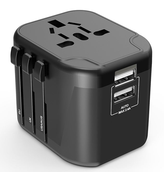 Adaptateur prise voyage universel international - 2 ports USB - compatible tous pays - Noir - Dio est en rupture de stock et sera expédié dès qu’il sera de retour en stock.