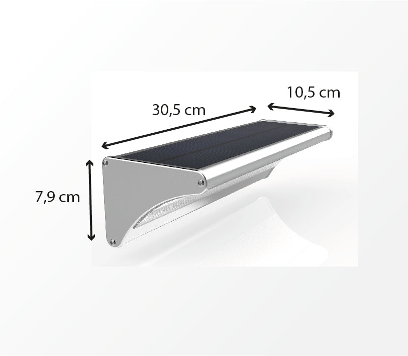 Caractéristiques de l'applique solaire avec détecteur de mouvement 30 cm - Akov Voltman :