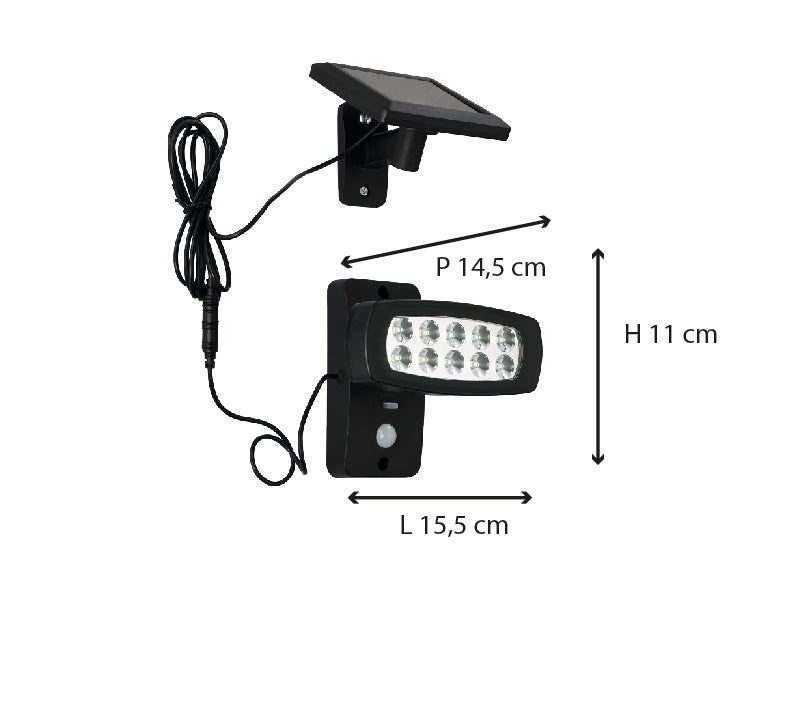 Caractéristiques de l'applique solaire LED déportée + détecteur de mouvement - Dio :