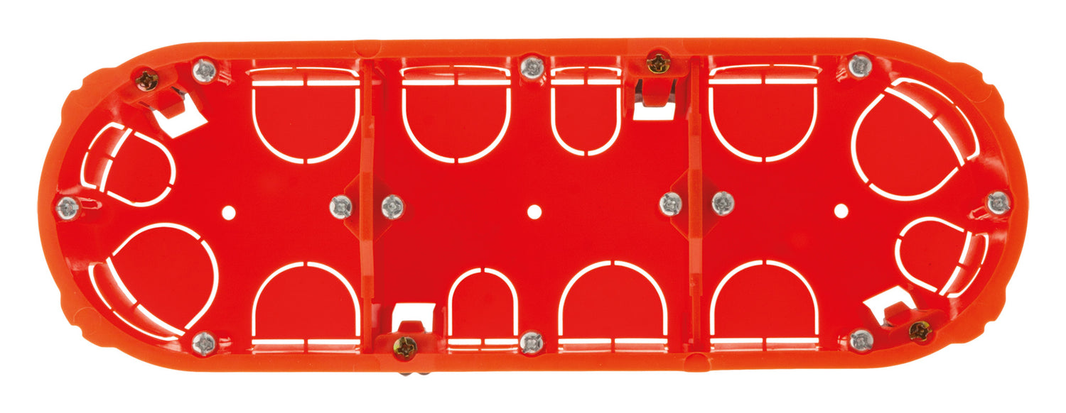 Prévue pour une mise en place horizontale, elle permet d'installer jusqu'à trois appareillages à vis ou à griffes, parfaitement alignés grâce à son entraxe standard de 71 mm.