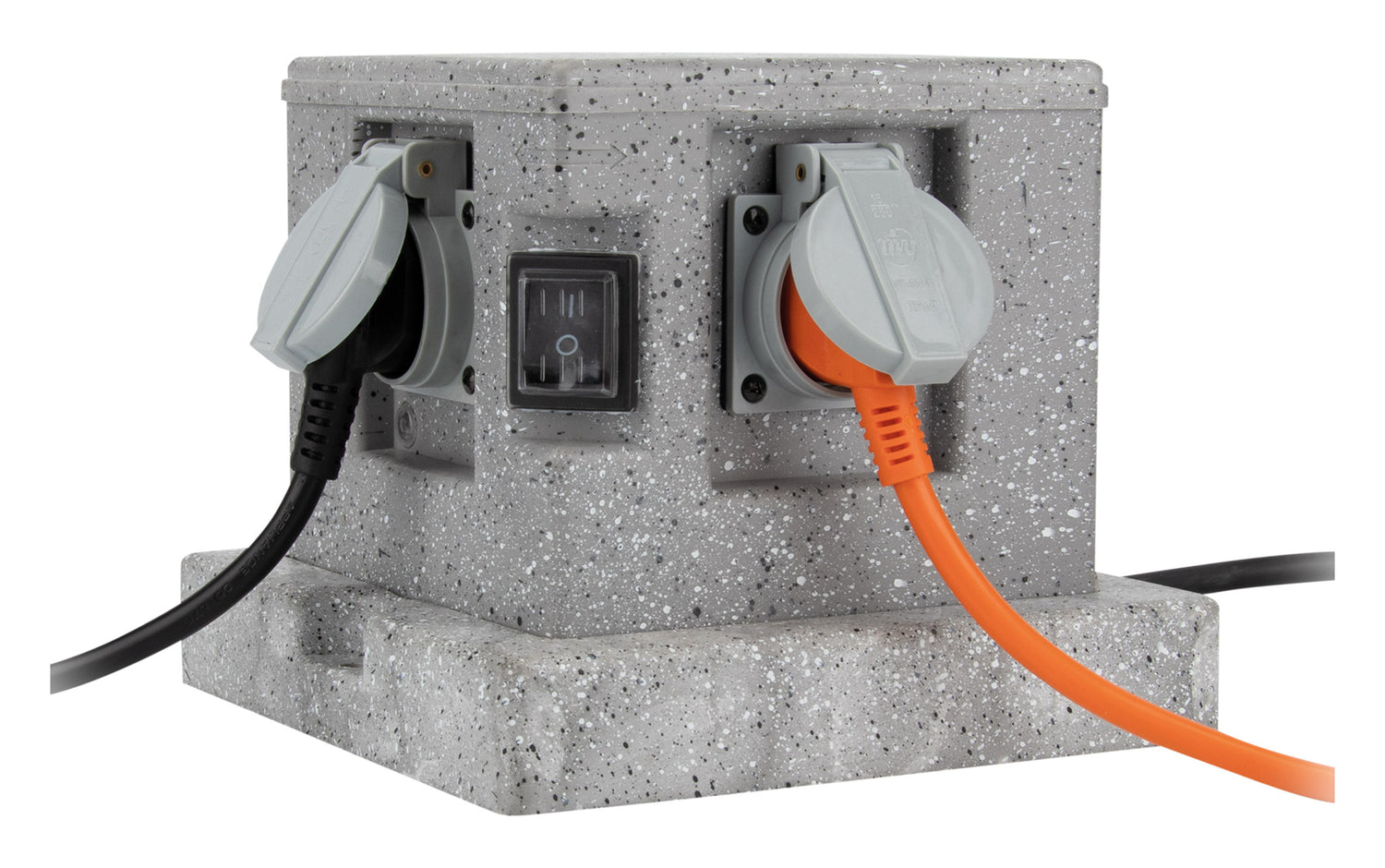 Conçu pour s'intégrer en toute discrétion dans votre jardin. Pour le branchement de vos outils, tondeuses, appareils et éclairages électriques en toute sécurité.
