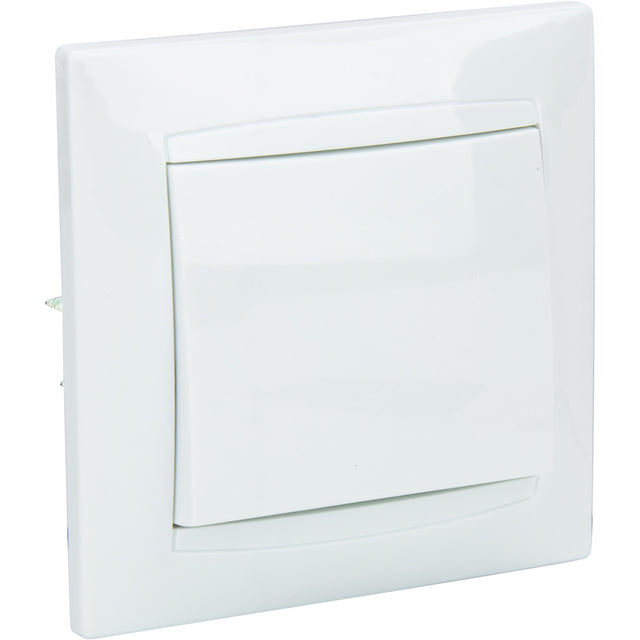 Conçu pour être monté sur une boîte standard, il est livré avec fixation vis et griffes, garantissant une installation rapide et sécurisée. Ce bouton est compatible avec une intensité de 6A et une tension de 250V, parfait pour les circuits électriques courants.