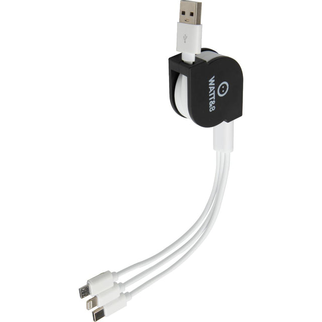 Caractéristiques du câble USB 2.0 rétractable 3 en 1 – Lightning, Micro-USB et Type-C (100 cm) - Watt and Co :