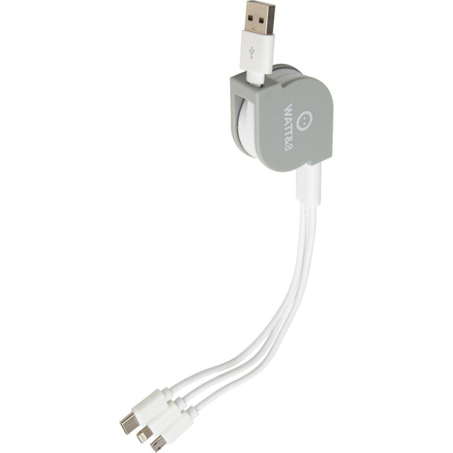 Câble USB rétractable 100cm Lightning, Micro-USB Type-C universel - Watt and Co