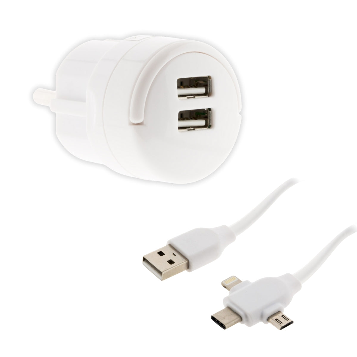 Double chargeur USB blanc de Zenitech : parfait pour une recharge rapide de vos appareils multimédias !