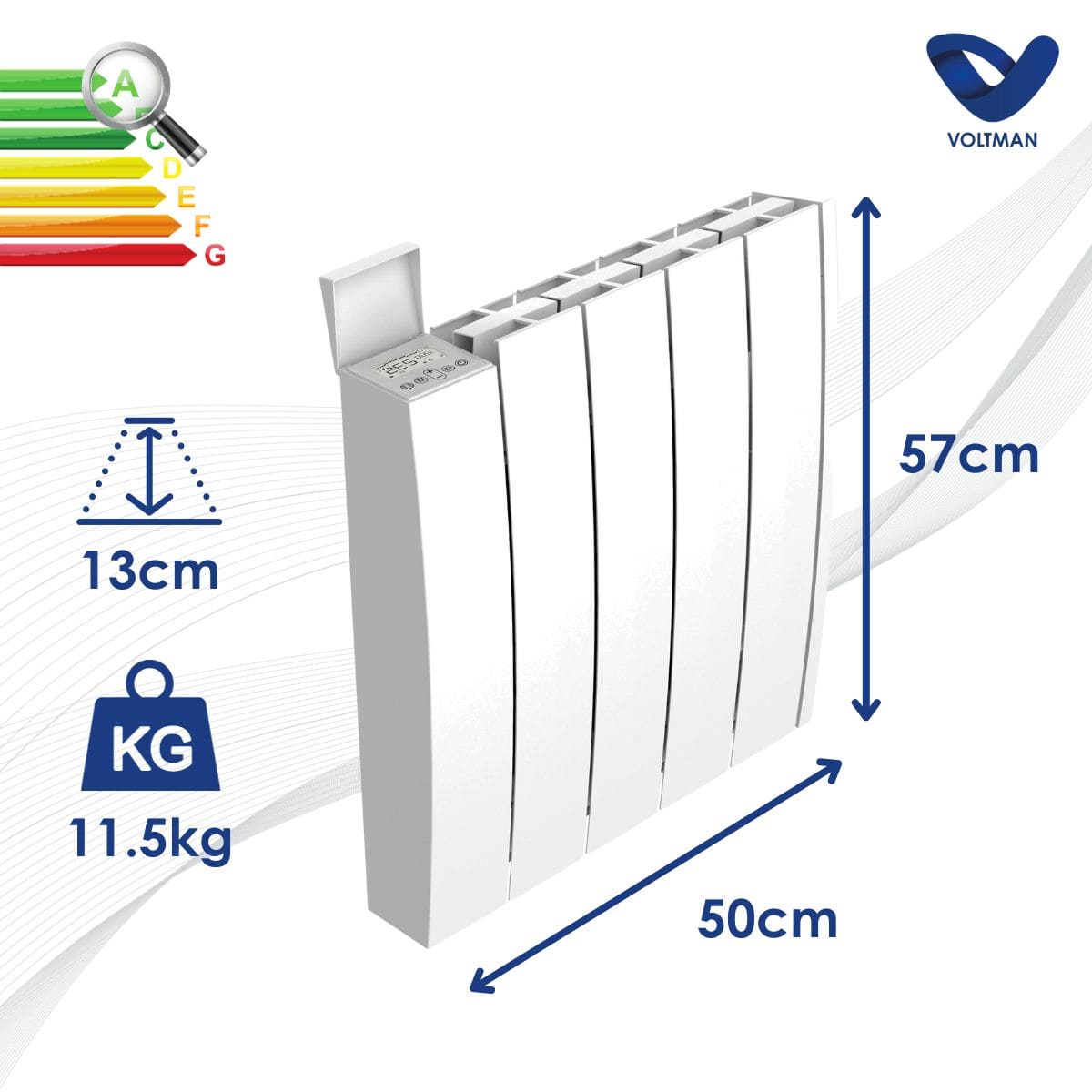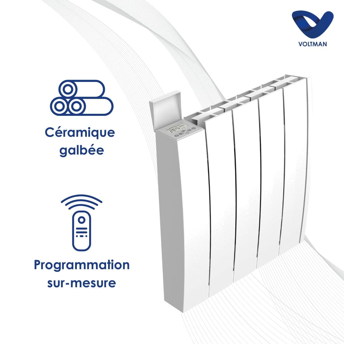 Caractéristiques du radiateur électrique fixe 1000W céramique - inertie sèche - Voltman :