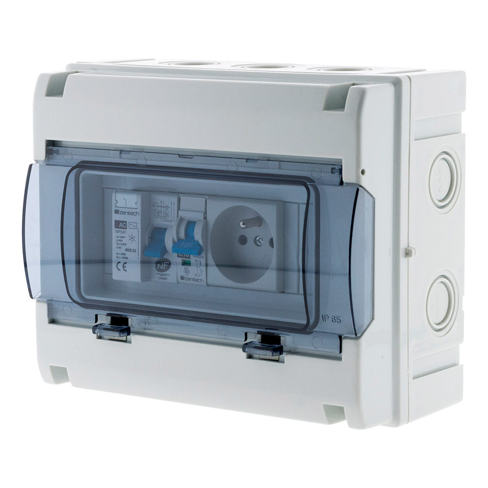 Caractéristiques du coffret électrique équipé étanche IP65 8 modules + accessoires - Zenitech :