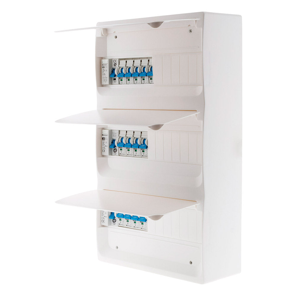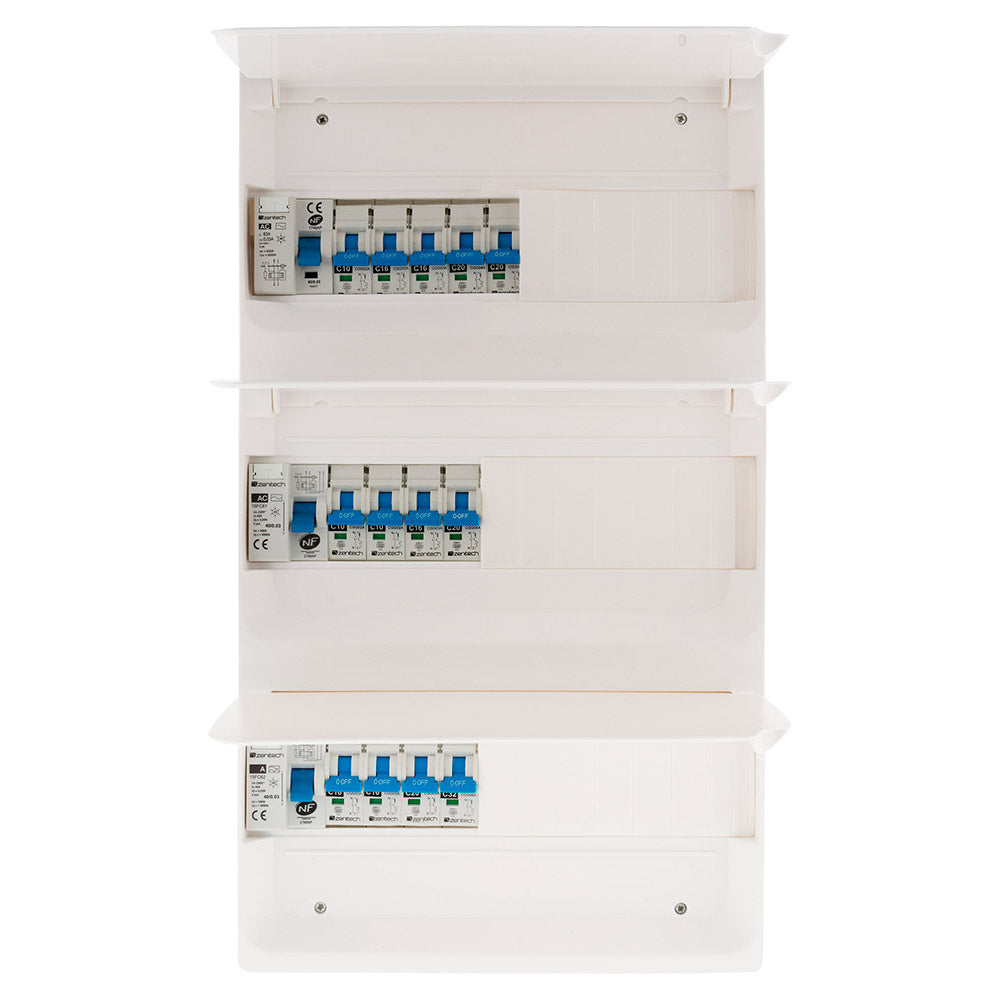 Il est livré avec 13 disjoncteurs préinstallés (3x10A, 5x16A, 4x20A, 1x32A) et 3 interrupteurs différentiels (1x 30mA 63A Type AC, 1x 30mA 40A Type AC, 1x 30mA 63A Type A) pour une protection efficace des circuits et des utilisateurs. Ce coffret est une solution fiable et pratique pour gérer et sécuriser l'alimentation électrique dans un logement.