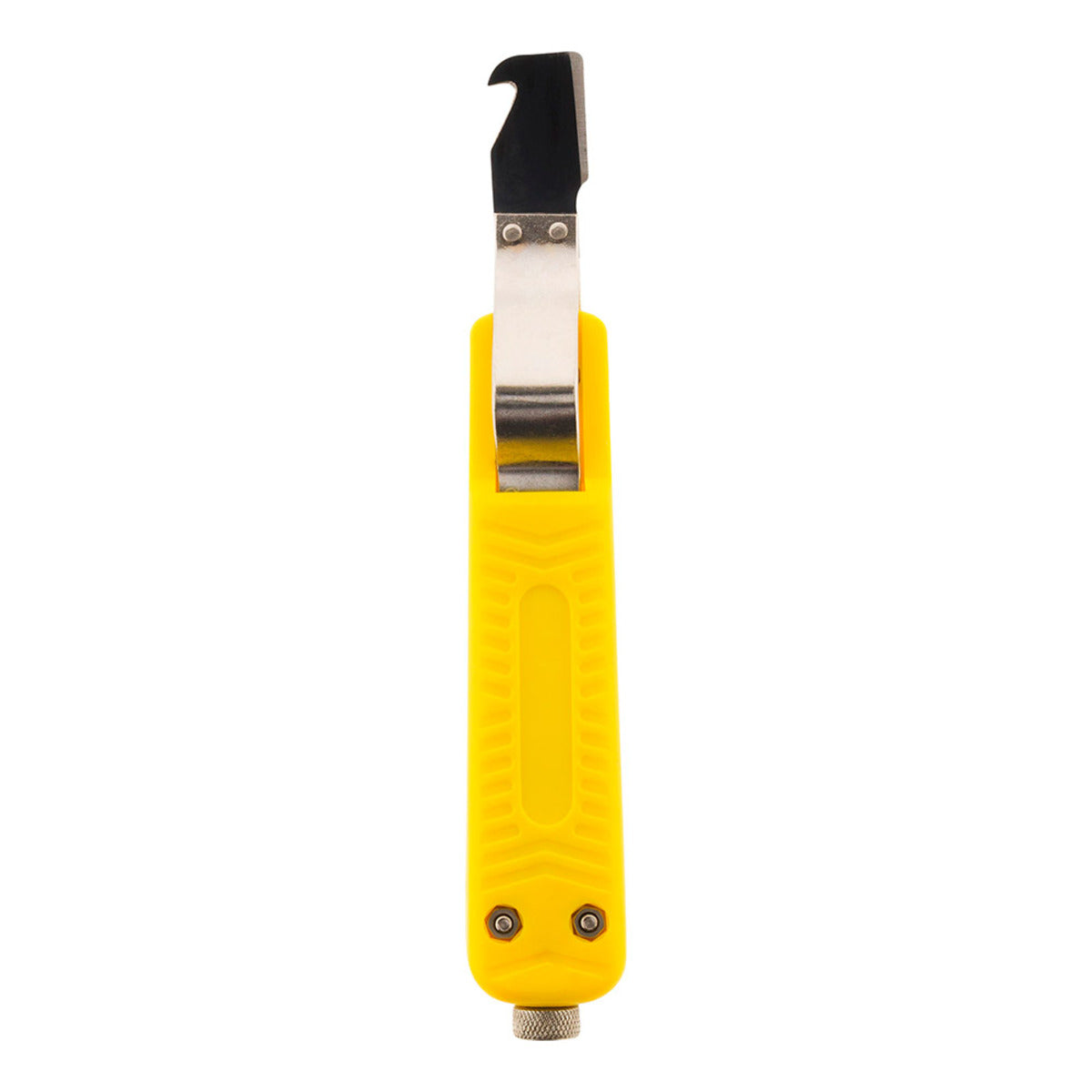 Avec sa vis de réglage pour ajuster la profondeur de coupe, il permet de réaliser des découpes précises et nettes sur différents types de câbles. Son design compact de 165 mm et sa couleur jaune assurent à la fois une bonne prise en main et une visibilité optimale, même dans des environnements peu éclairés.