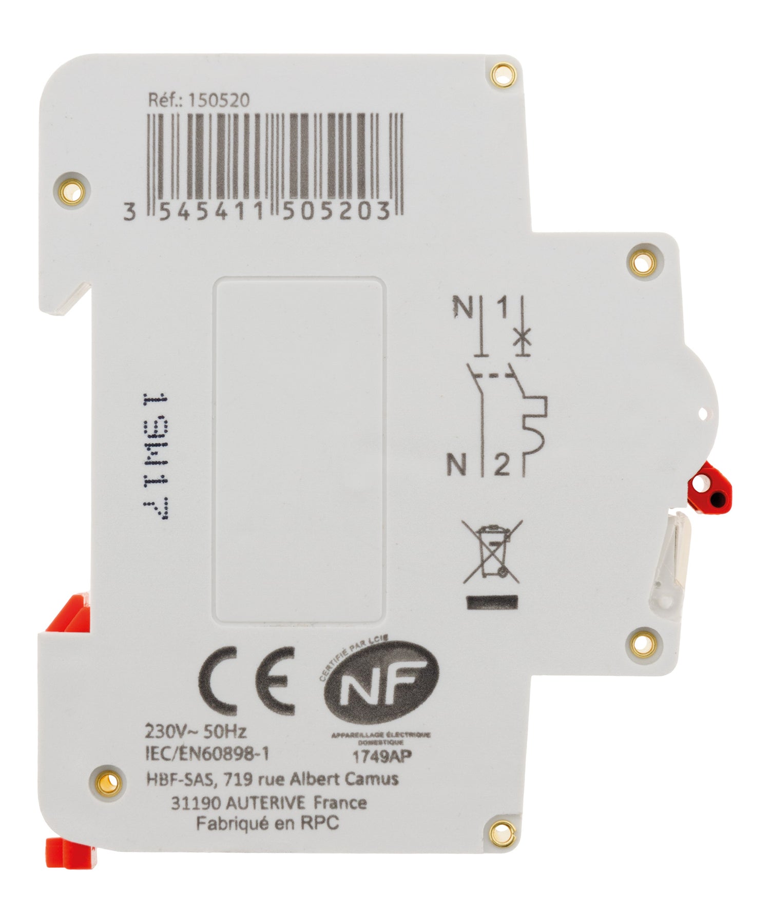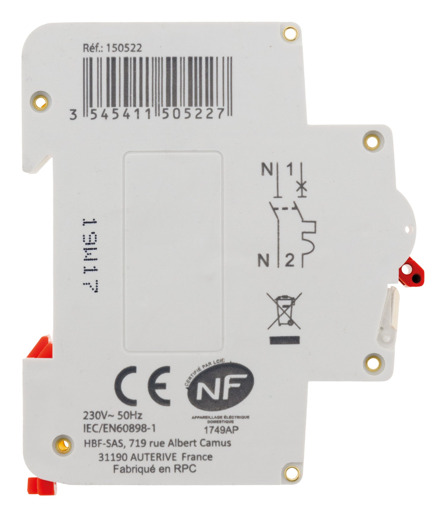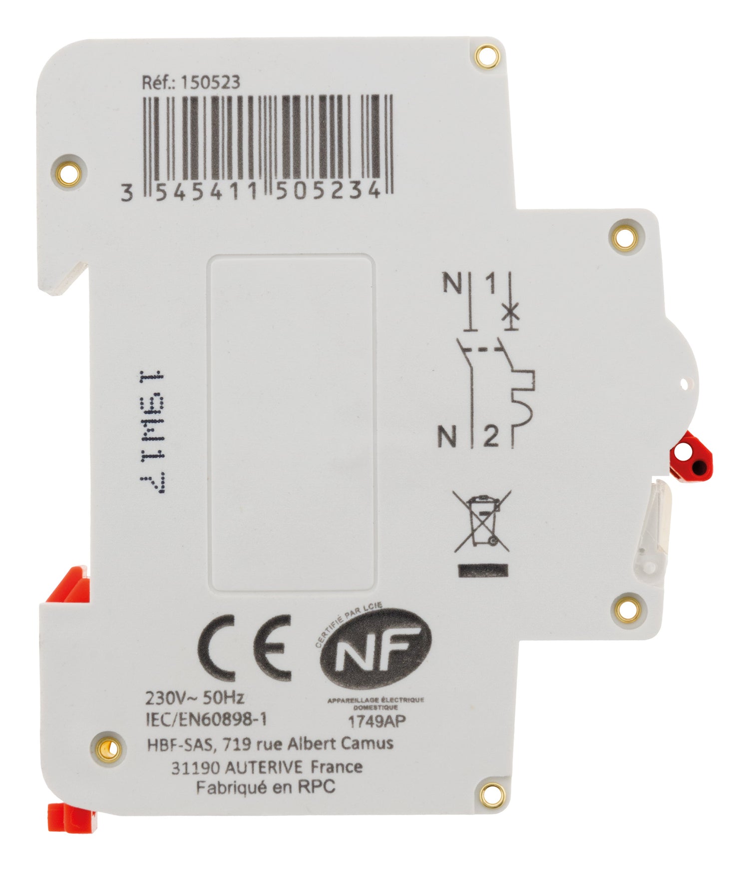 Il dispose d'un pouvoir de coupure de 4,5kA, ce qui permet une protection efficace contre les courts-circuits et les surcharges. Disponible en plusieurs intensités (2A, 10A, 16A, 20A, 32A), il s'adapte à une variété de besoins électriques. Il est équipé d'indicateurs ON/OFF mécaniques avec un marquage sur la manette, offrant une visibilité claire pour un contrôle facile.