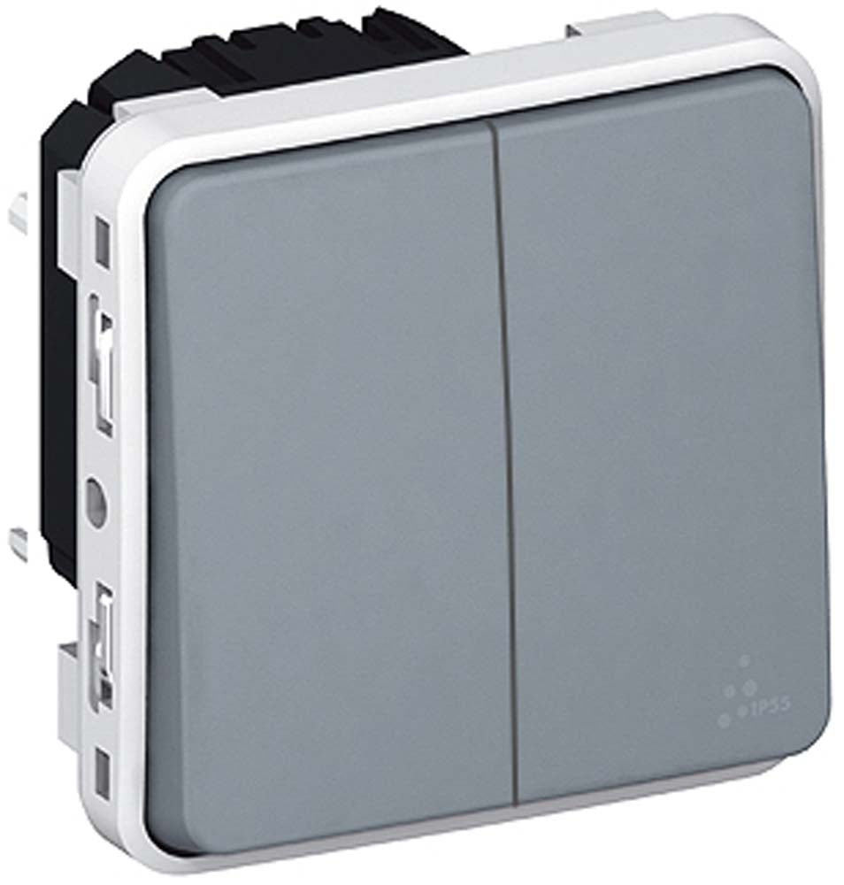 Le double interrupteur va-et-vient étanche Plexo en gris permet de piloter deux circuits électriques depuis un seul point de commande