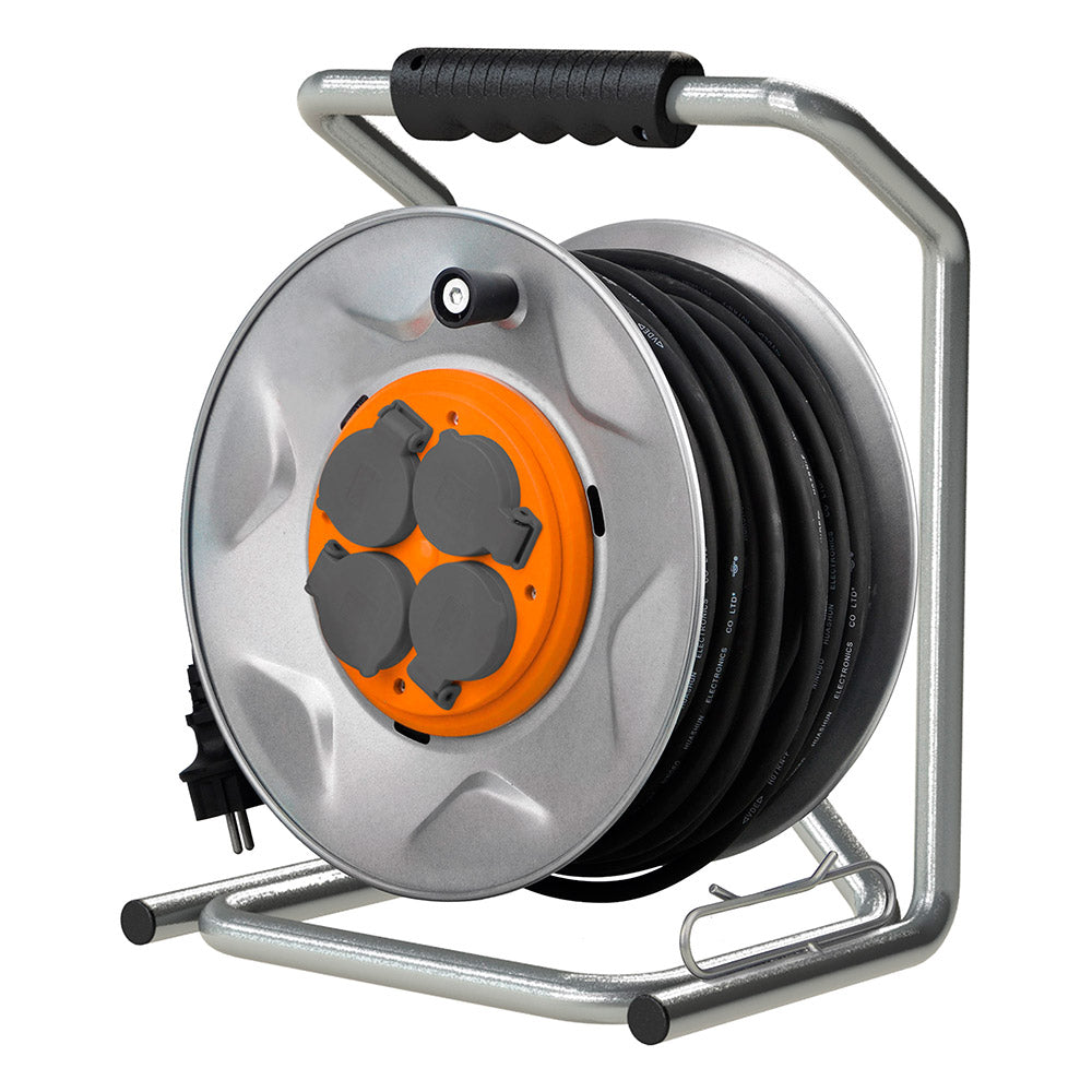 Disponible en longueur de 25 ou 35 mètres, il est doté d'un câble H07RN-F 3G2,5mm², reconnu pour sa robustesse et sa résistance aux conditions difficiles. Grâce à sa protection thermique et à son dispositif de protection contre les surcharges, il supporte une puissance de 1000W lorsque le câble est enroulé et jusqu'à 3000W une fois déroulé.