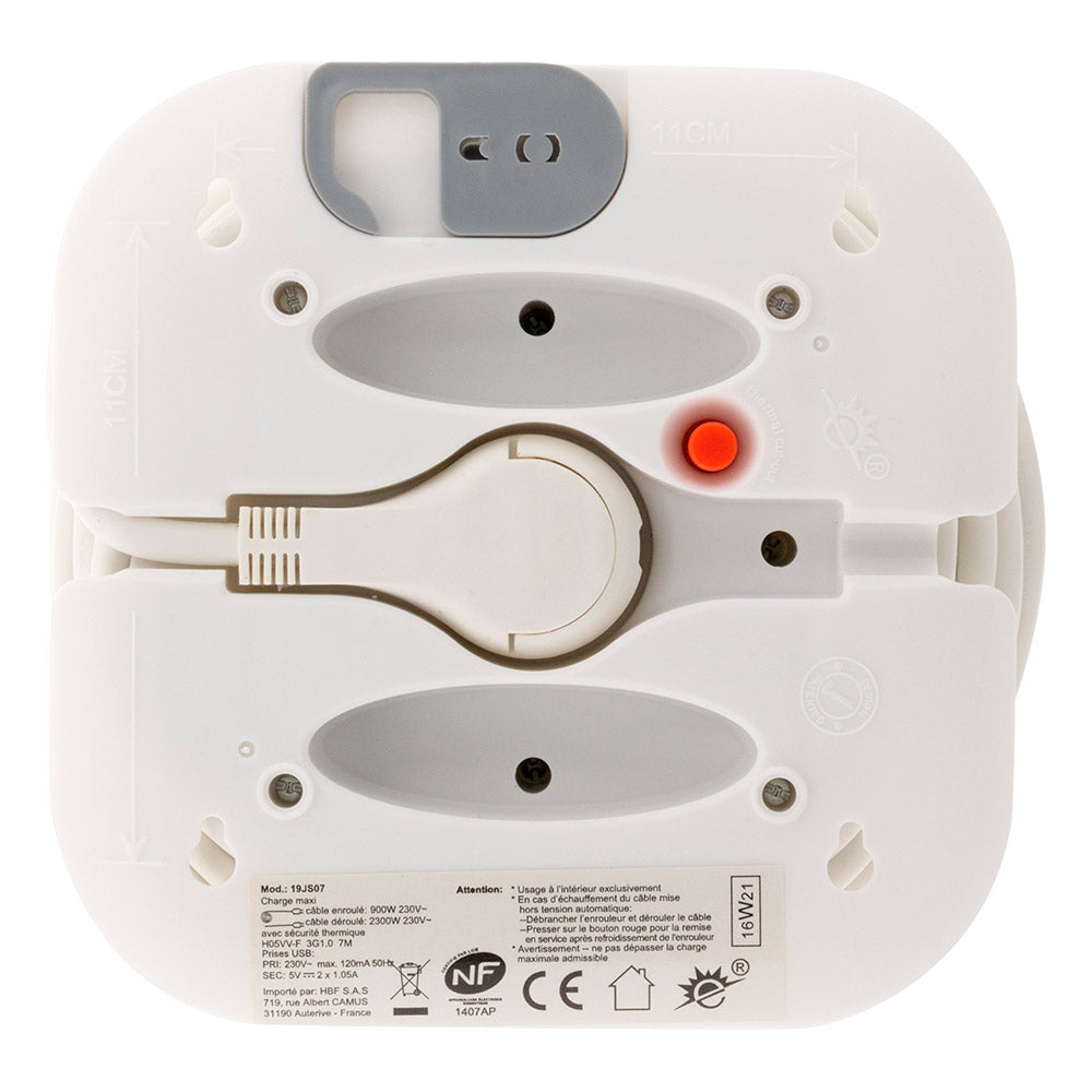Caractéristiques de l'enrouleur domestique 3 prises 2P+T 16A + 2x USB - 7m - Zenitech :