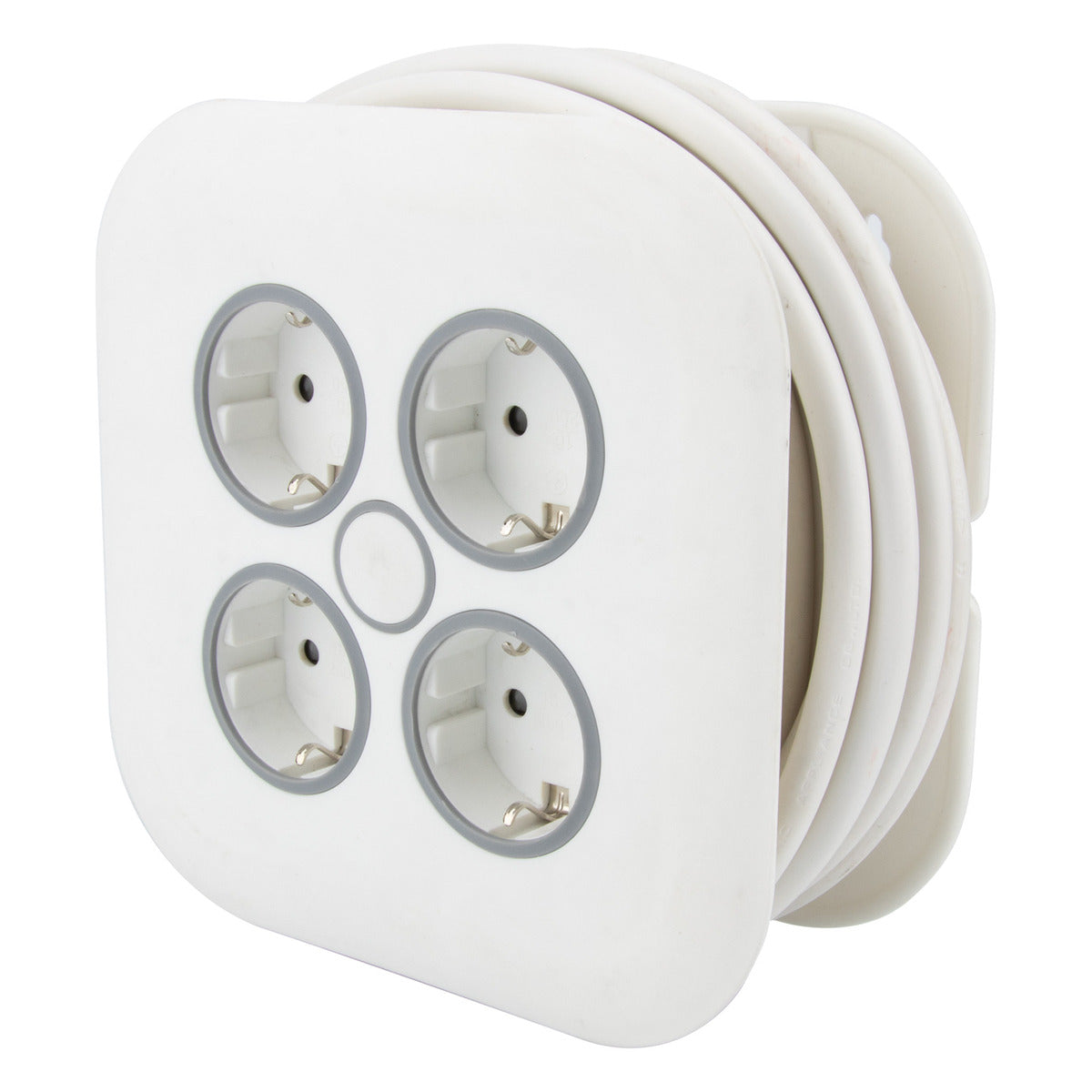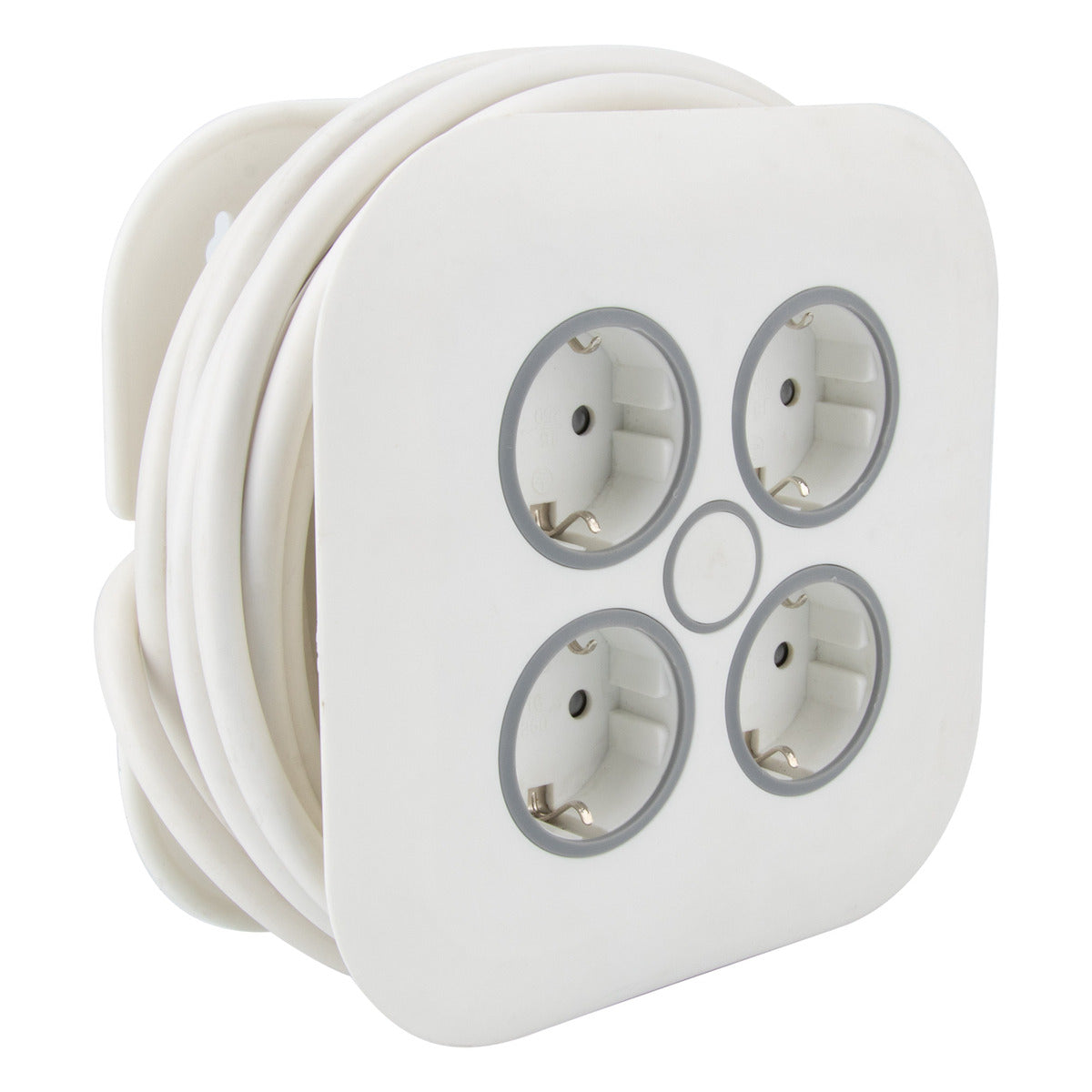Caractéristiques de l'enrouleur domestique 4 prises Schuko 7m - blanc - Zenitech :
