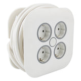 Avec ses 4 prises Schuko et son câble HO5VV-F 3G1.5mm² de 7 mètres, il offre une grande flexibilité d'utilisation. Le crochet de suspension rétractable permet de le ranger facilement, et la prise extra-plate avec anneau d'extraction simplifie son utilisation.