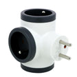 Avec ses 3 prises avec terre de type E, dont 2 prises latérales et 1 prise orientée vers le haut ou le bas, elle permet de connecter plusieurs appareils sans bloquer d'autres prises. Conçue en thermoplastique résistant, elle supporte une puissance maximale de 3680W sous 230V avec un courant nominal de 16A.