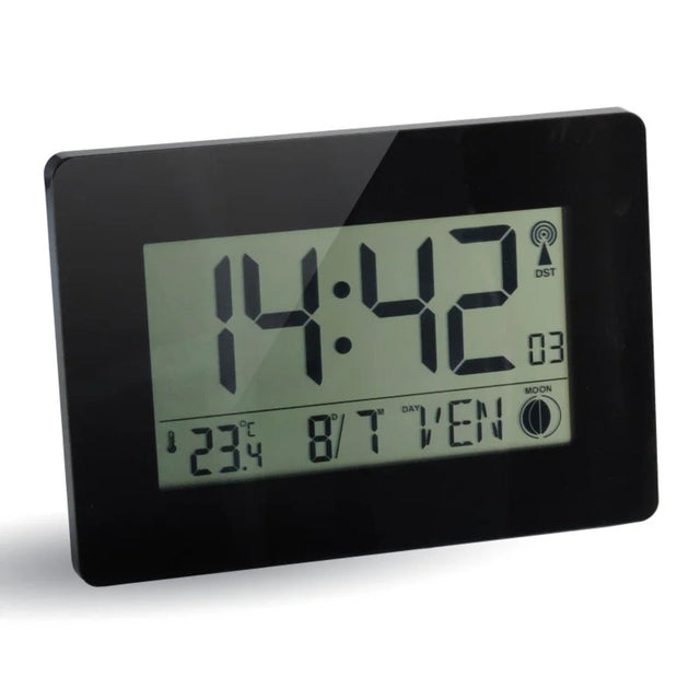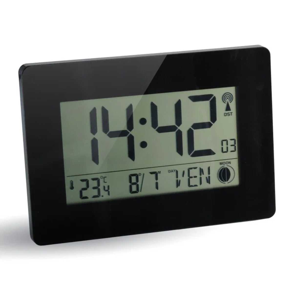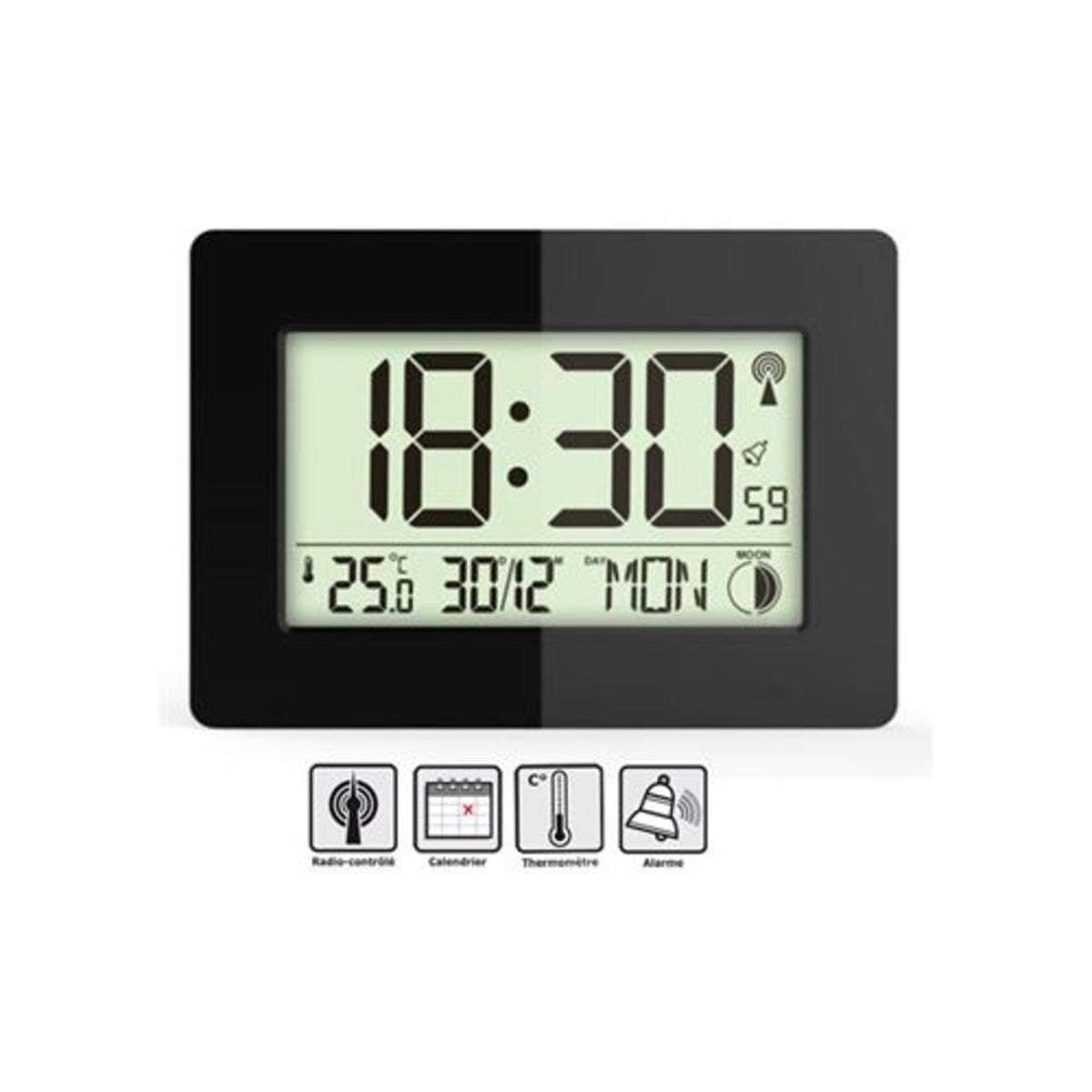 Grâce à sa fonction radio-contrôlée, l'horloge ajuste automatiquement l'heure, garantissant ainsi une précision sans faille. Son design pratique et moderne assure un confort visuel tout au long de la journée.