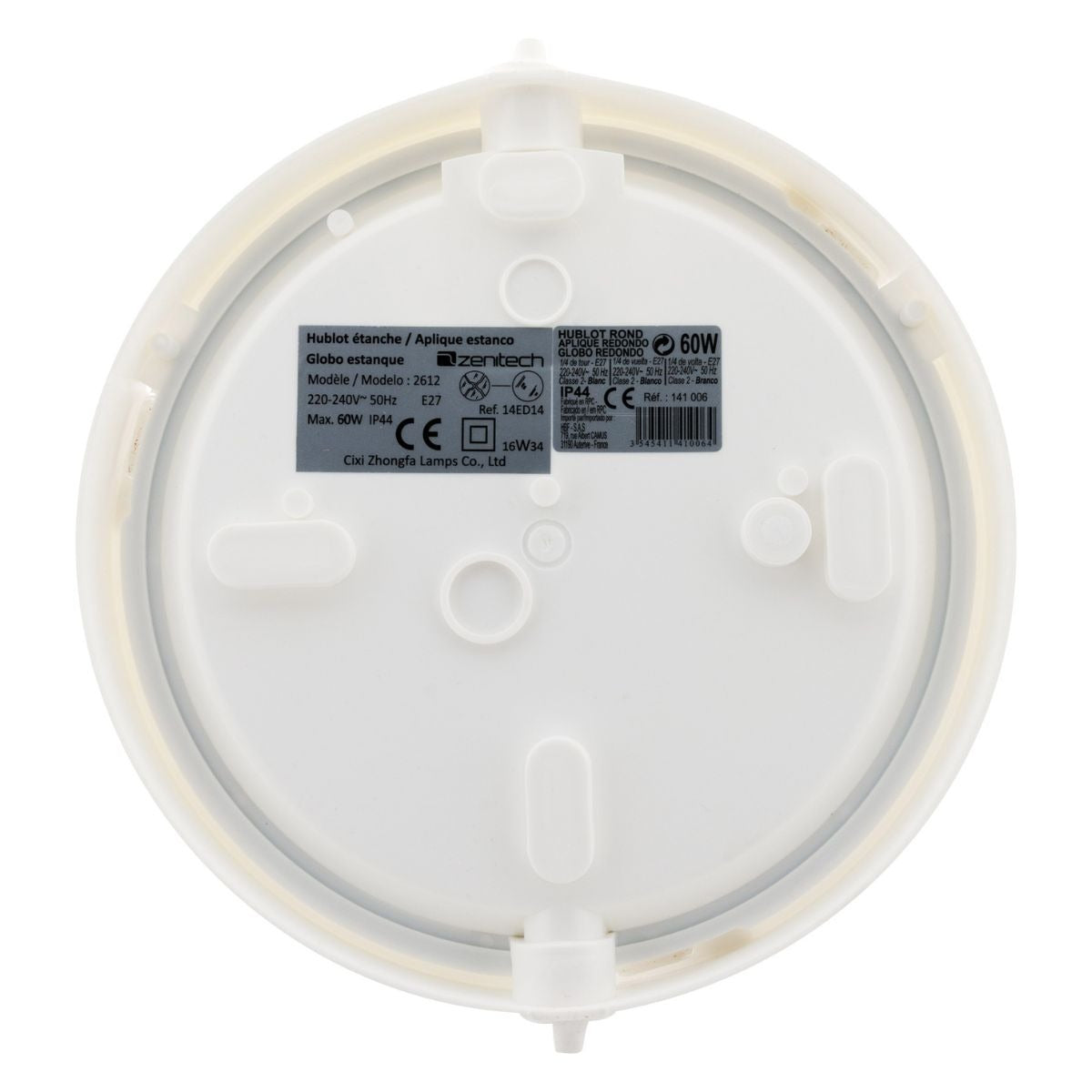 Caractéristiques du hublot 1/4 tour IP44 E27 Classe II blanc - Lébénoïd :