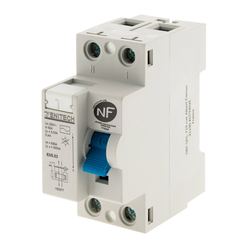 Caractéristiques de l'interrupteur différentiel type AC 25/2-30mA pour tableau électrique - Zenitech :