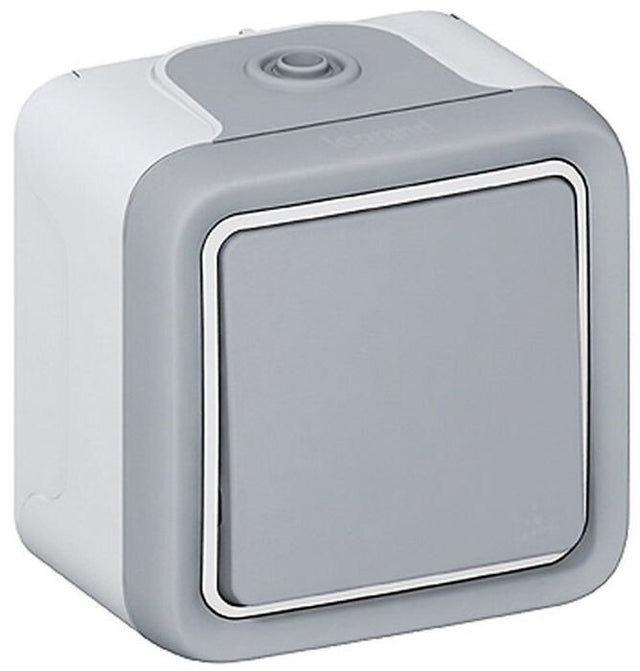 Interrupteur va-et-vient étanche complet saillie Plexo - Gris de Legrand : Un appareillage polyvalent conçu pour fonctionner comme un interrupteur simple ou un va-et-vient lorsqu'il est associé à un second interrupteur.