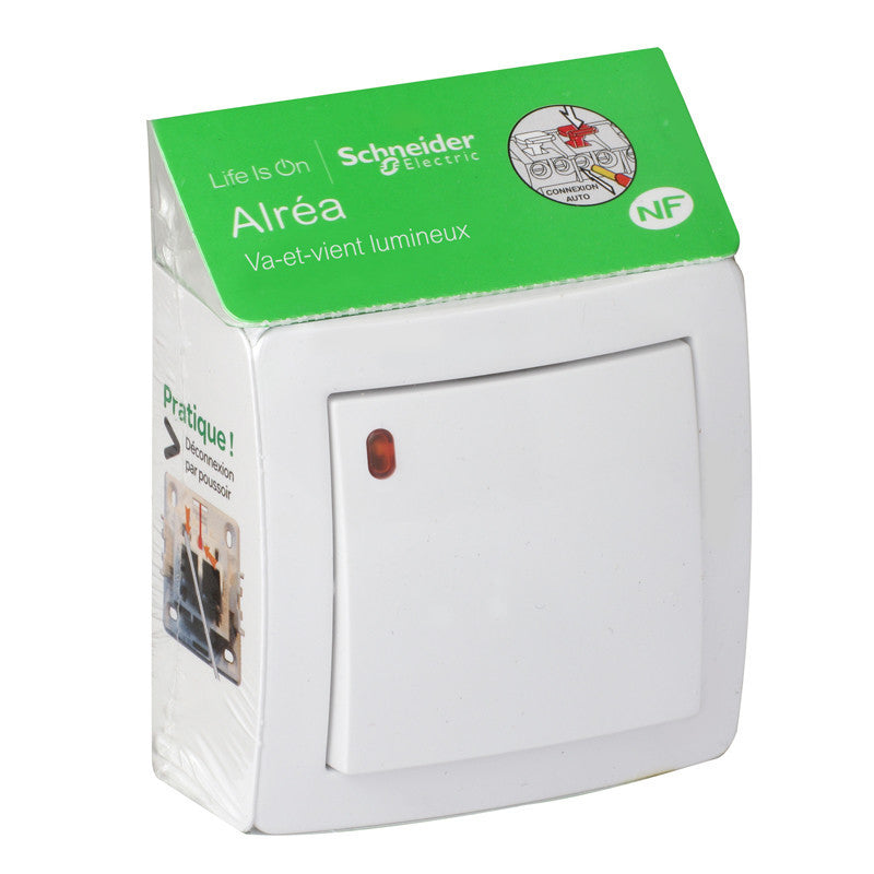 Caractéristiques de l'interrupteur va-et-vient lumineux 10 A blanc - Alréa - Schneider :