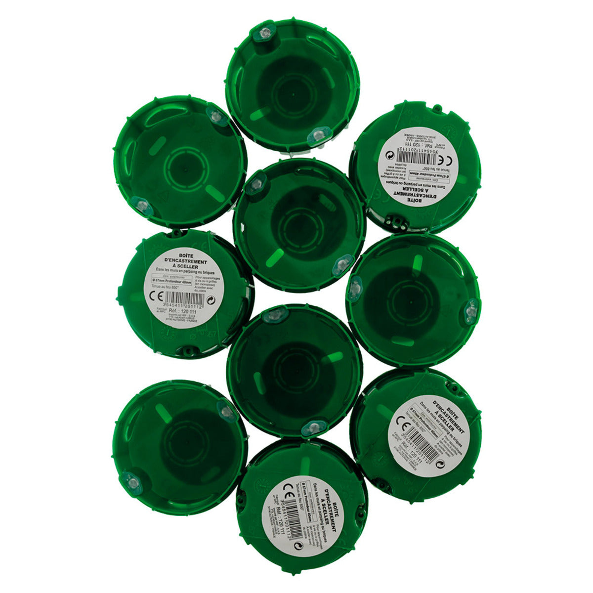 Lot 10 boîtes maçonnerie Ø60x40mm - appareillage vis et griffes - Vert - Zenitech est en rupture de stock et sera expédié dès qu’il sera de retour en stock.