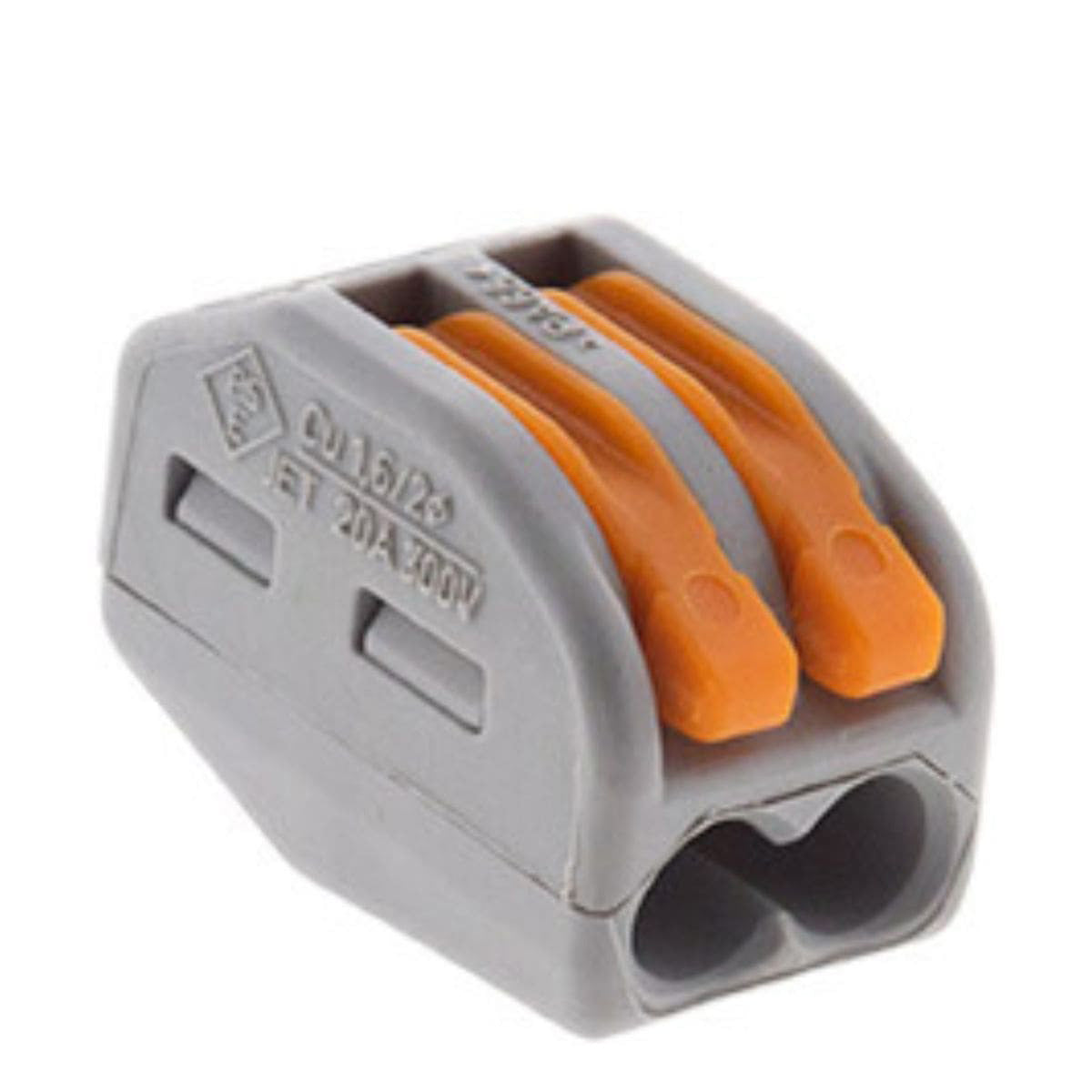 Caractéristiques du lot de 30/50 bornes automatiques à cliquet S222 - 2/3/5 entrées - fils rigides et souples 4mm² max - orange - Wago