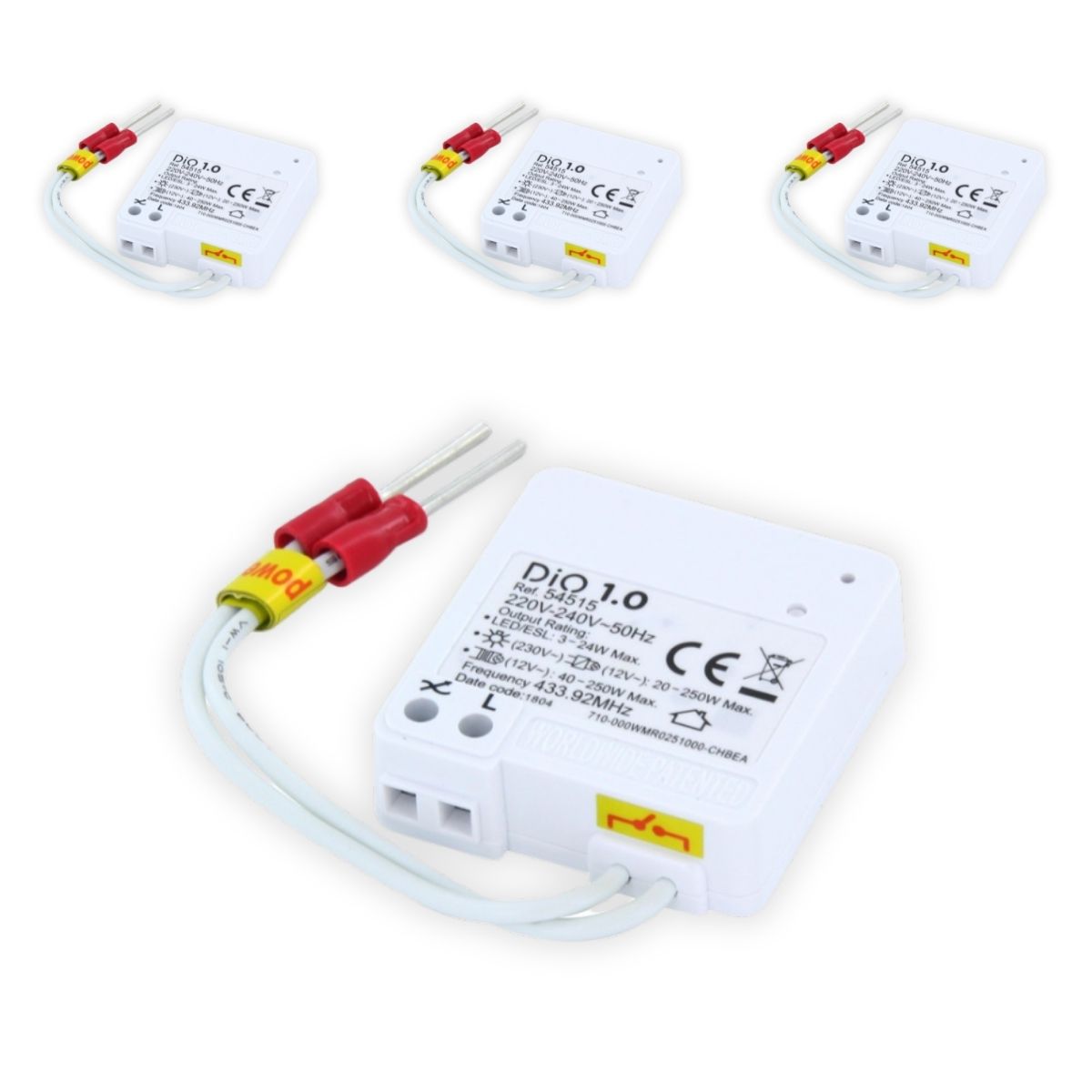 Installez le micromodule d'éclairage intelligent est extrêmement simple et ne nécessite aucune modification de votre installation électrique. Il vous suffit de raccorder le micromodule derrière votre interrupteur existant, de choisir votre commande ou le détecteur sans fil DiO 1.0 et de les associer en 2 clics. Le micromodule d'éclairage est compatible avec toutes les commandes et détecteurs DiO 1.0 :
