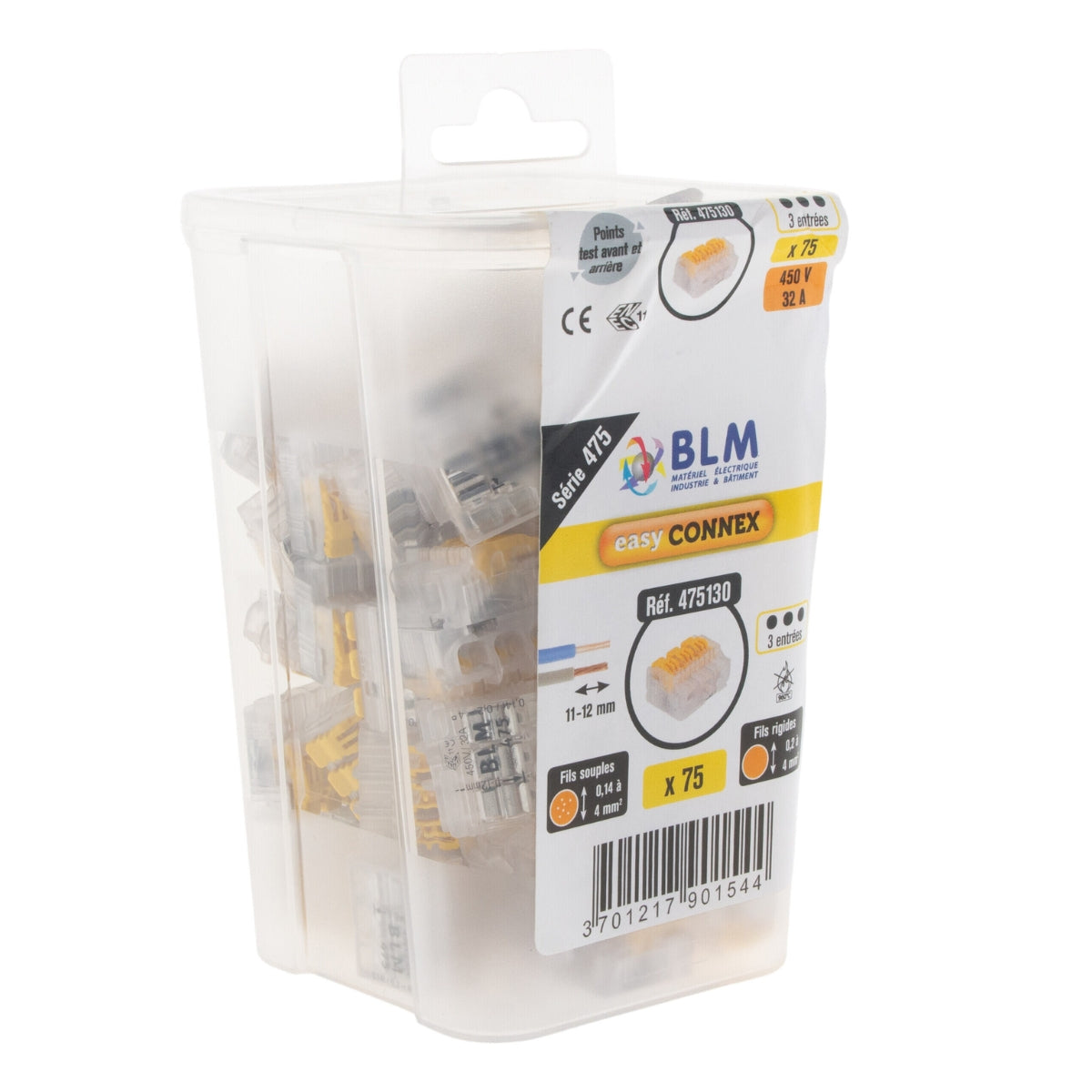 Lot de 40/75/100 bornes à levier S475 - 2/3/5 entrées 4mm² - BLM - 2 / 100 est en rupture de stock et sera expédié dès qu’il sera de retour en stock.