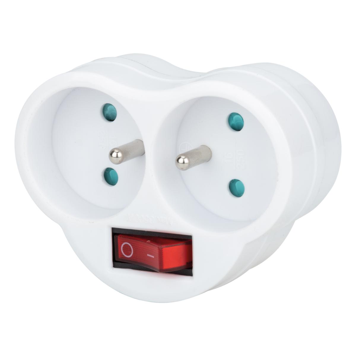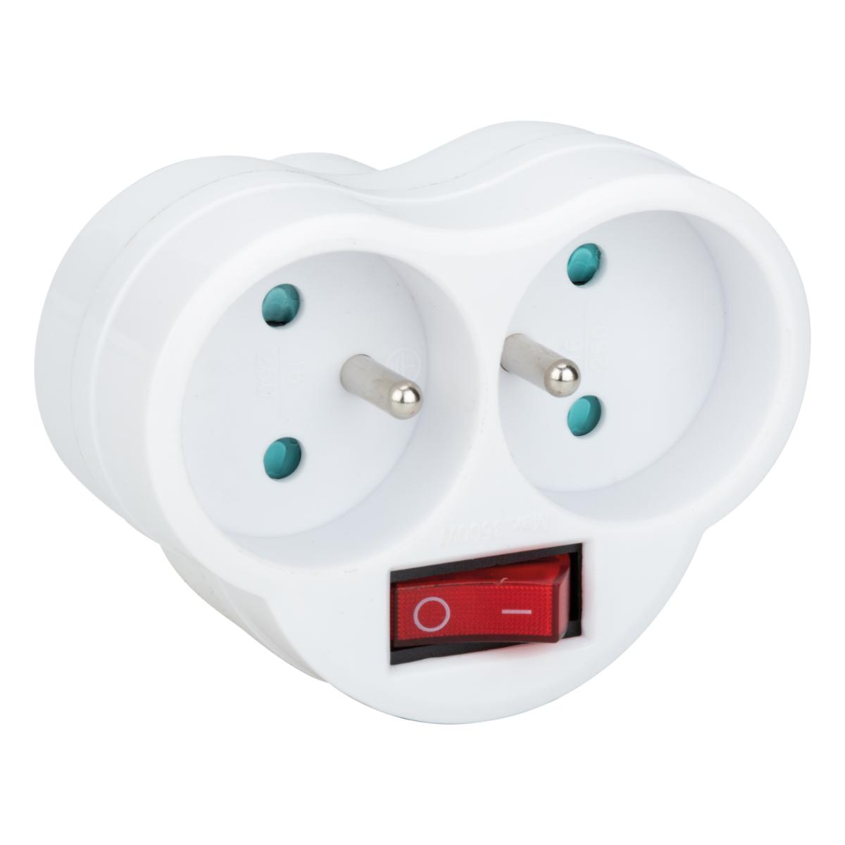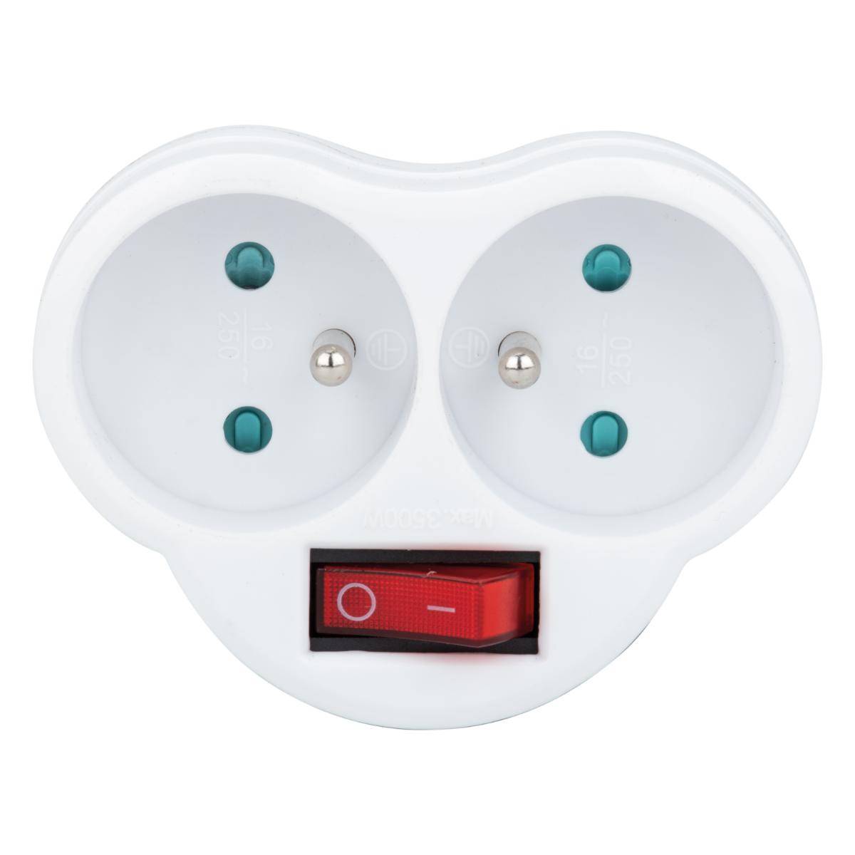 Multiprise biplite 16A + interrupteur façade - Blanc - Zenitech