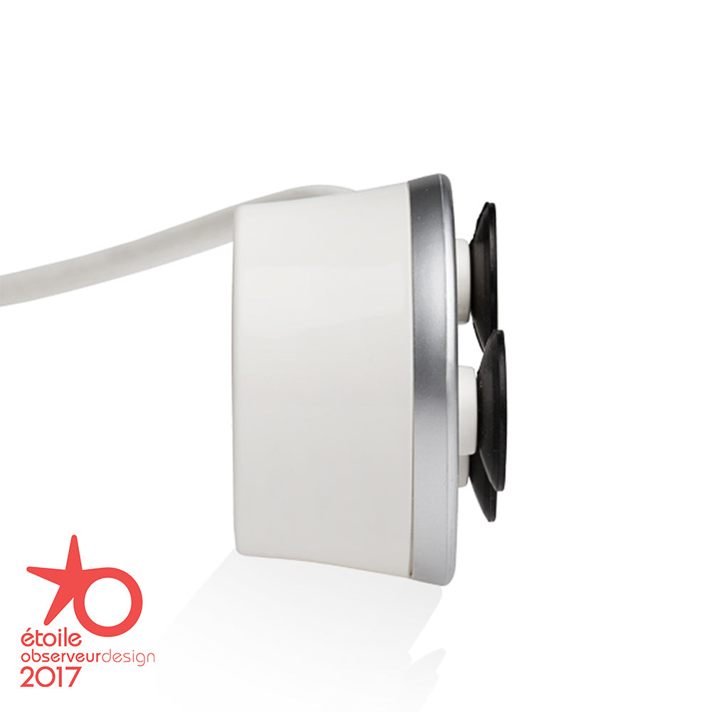 Récompensée d'une Etoile du design en 2017, DUETWO est une multiprise ultra fonctionnelle qui apporte de la fonctionnalité à tous les espaces de travail. Son système de prise déportée unique sur un câble d'une longueur d'un mètre et ses 3 ventouses de fixation permet d'apporter une prise supplémentaire sans occasionner la moindre gêne.