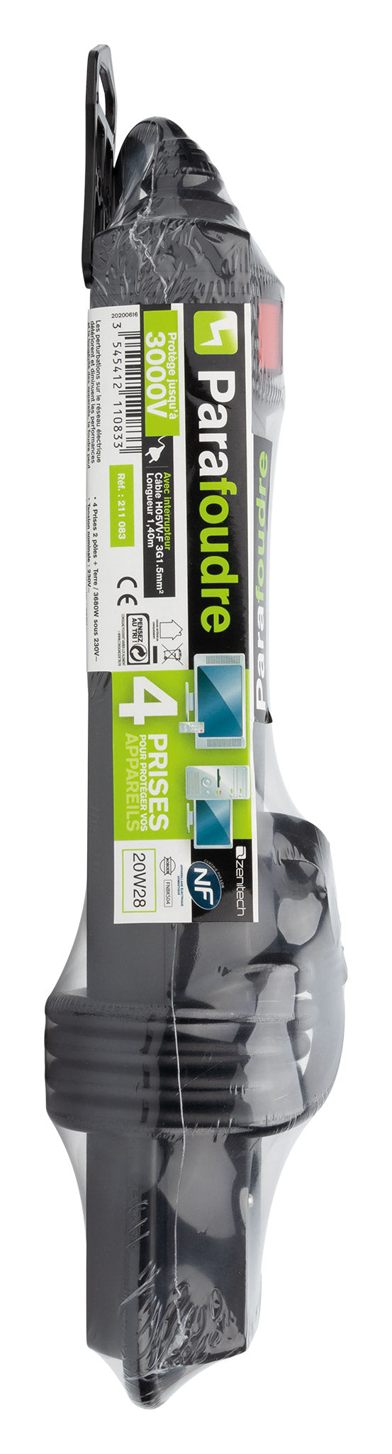 Caractéristiques de la multiprise 4 prises parafoudre - Zenitech :