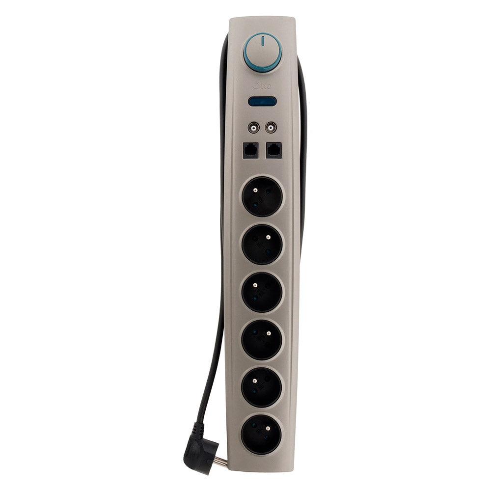 Caractéristiques de multiprise parafoudre 6 prises 2P+T 16A + 2 prises TV + RJ11/RJ45 - Otio :