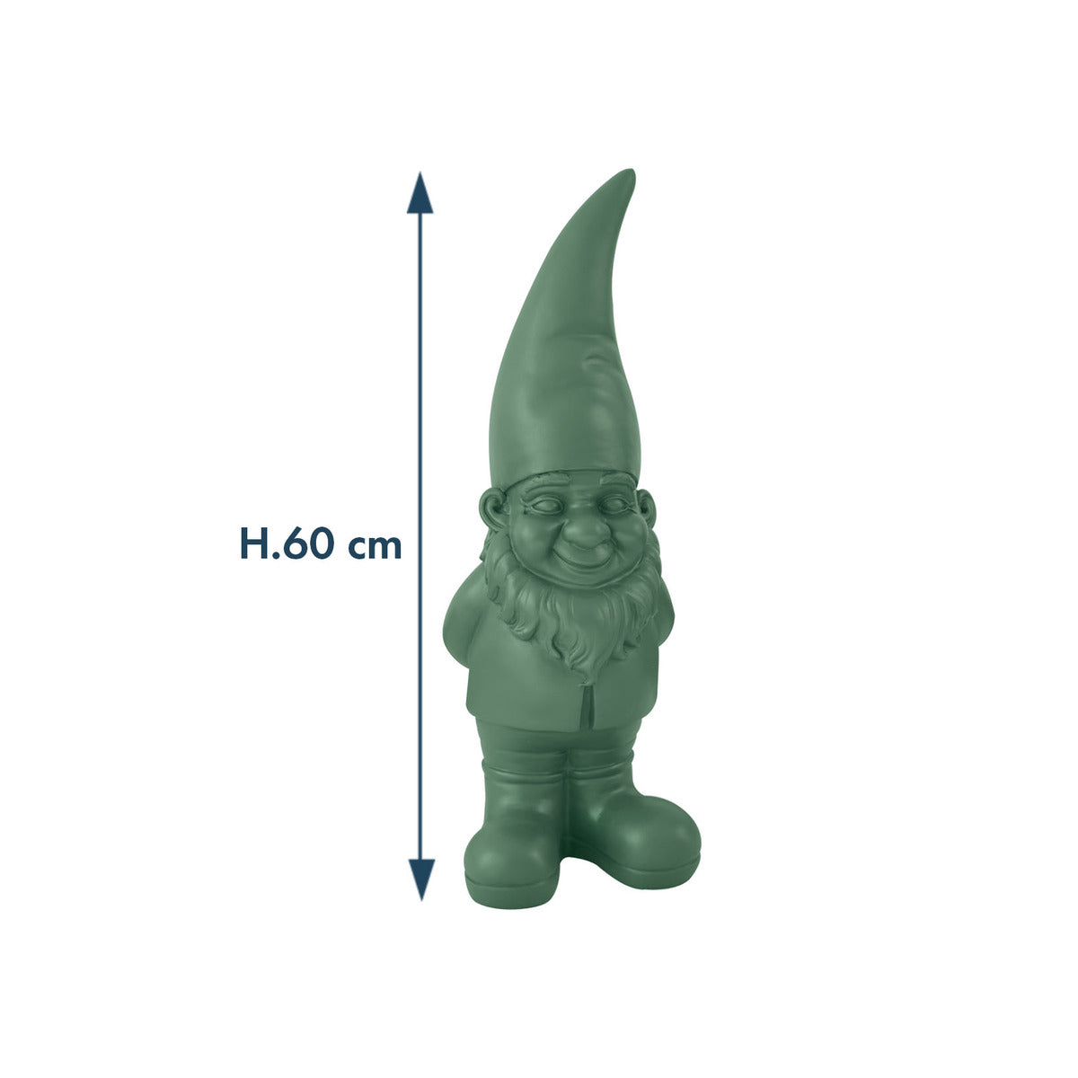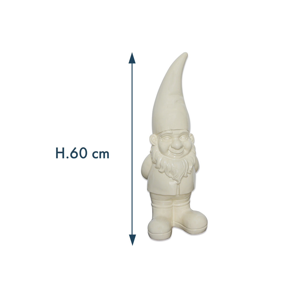 Fabriqué en résine résistante, il est conçu pour durer même face aux intempéries grâce à sa peinture spéciale qui protège contre les conditions climatiques. Ce charmant nain de jardin est disponible en deux tailles, 40 cm et 60 cm, et dans deux coloris élégants : écru et sauge.