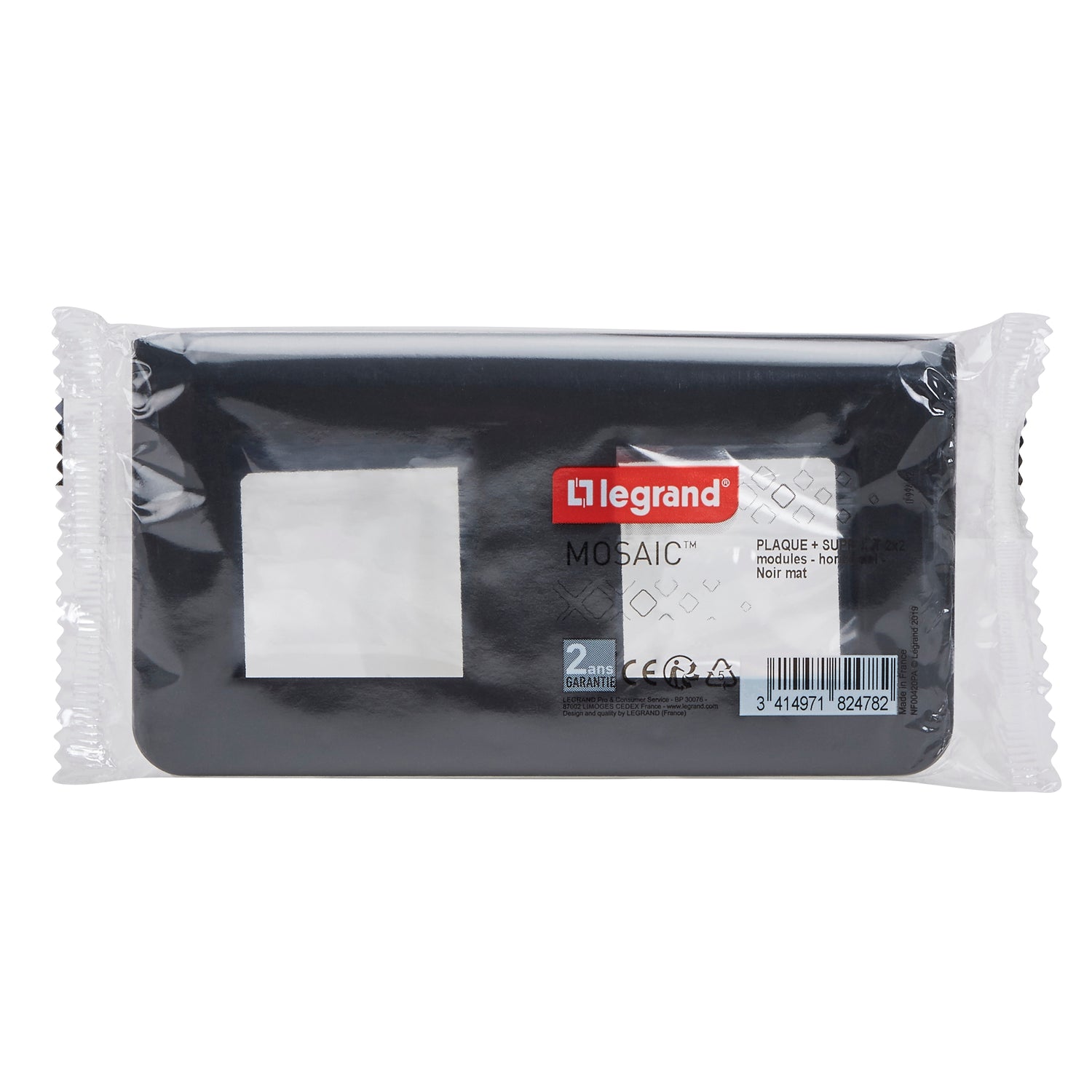 Plaque de finition avec support pour 2x2 modules montage horizontal - Mosaic - Noir - Legrand est en rupture de stock et sera expédié dès qu’il sera de retour en stock.