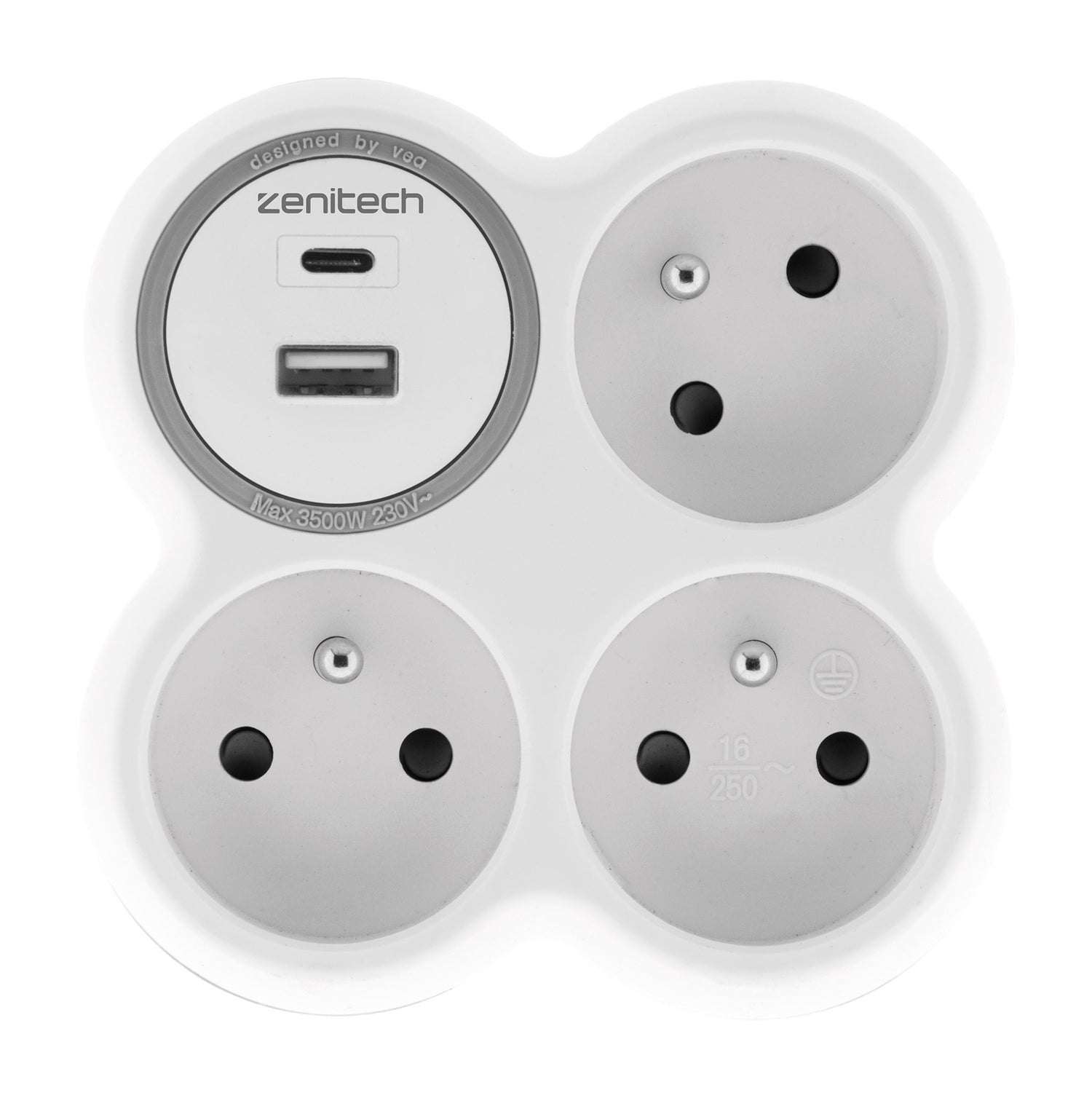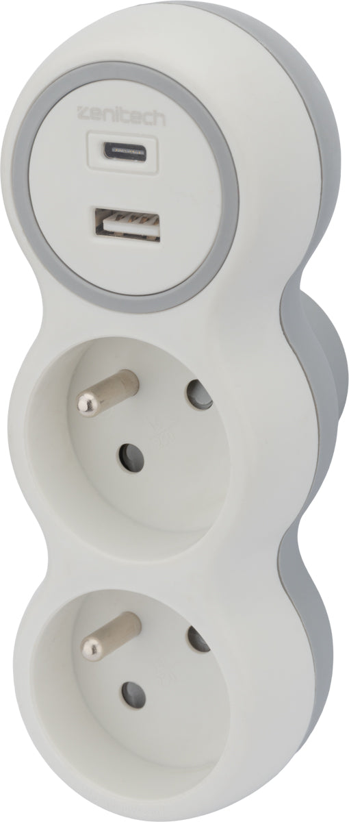 Cette prise Zenitech est parfaite pour recharger simultanément vos appareils grâce à sa prise 16A et ses deux ports USB !