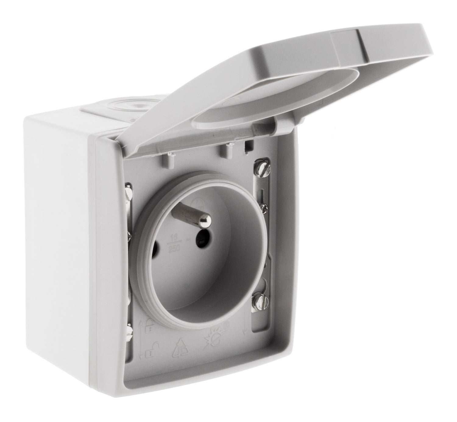 La prise 2P+T étanche IP55 Orok est conçue pour un usage en extérieur comme en intérieur exposé