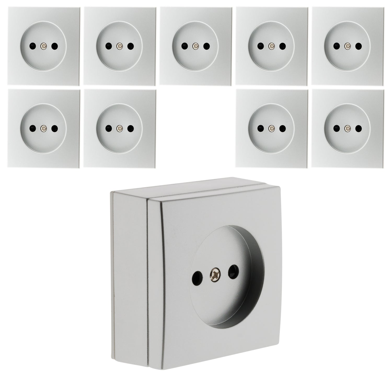 Caractéristiques de la prise 2P 10A en saillie - chrome - Zenitech :