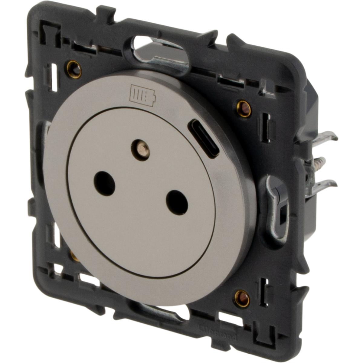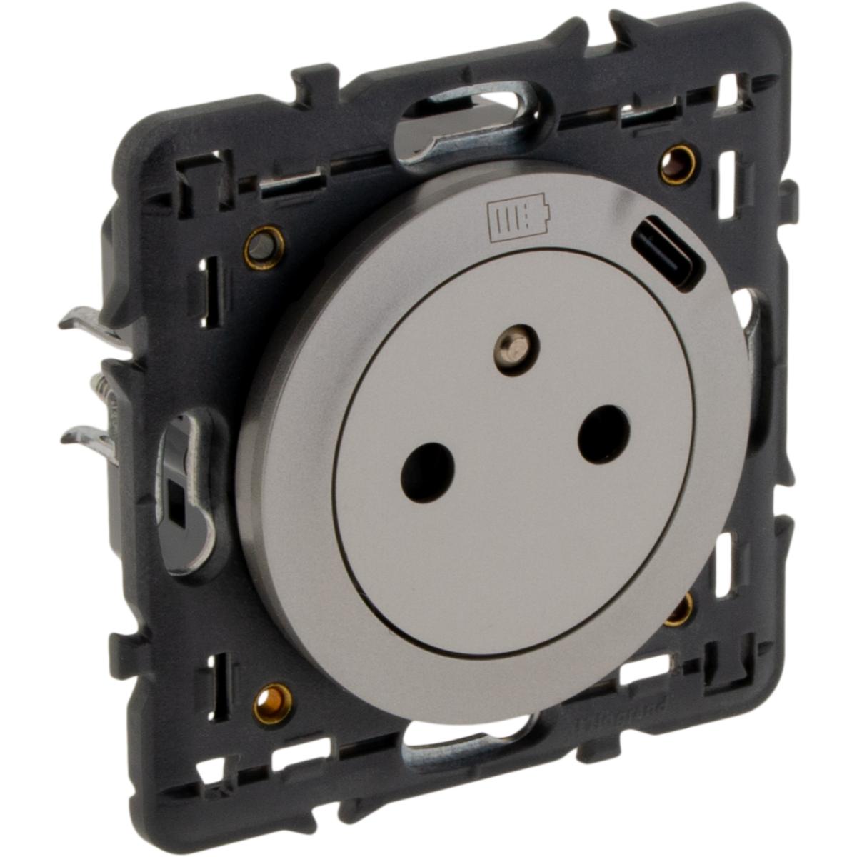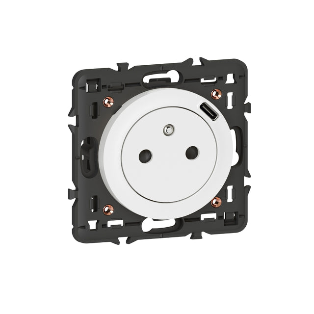 Cette prise de courant 2P+T Céliane 16A avec chargeur USB Type C intégré permet une alimentation classique et une recharge rapide de vos appareils