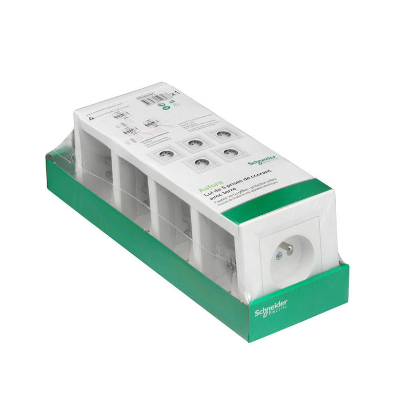 La prise de courant 2P+T à vis blanc Asfora combine sécurité, praticité et esthétique pour un usage quotidien