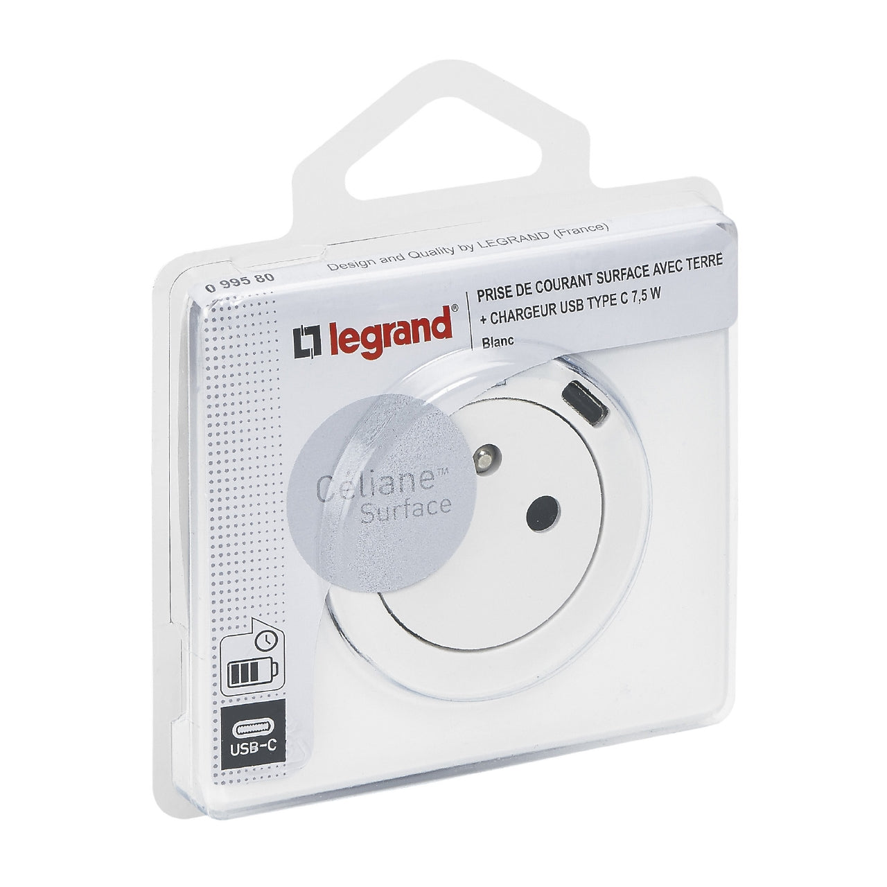 Caractéritiques de la prise de courant 2P+T 16A avec chargeur USB Type C complet Céliane - blanc - Legrand :
