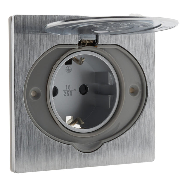 Prise de sol 16A Schuko alu brossé - IP44 + boîte installation - Zenitech