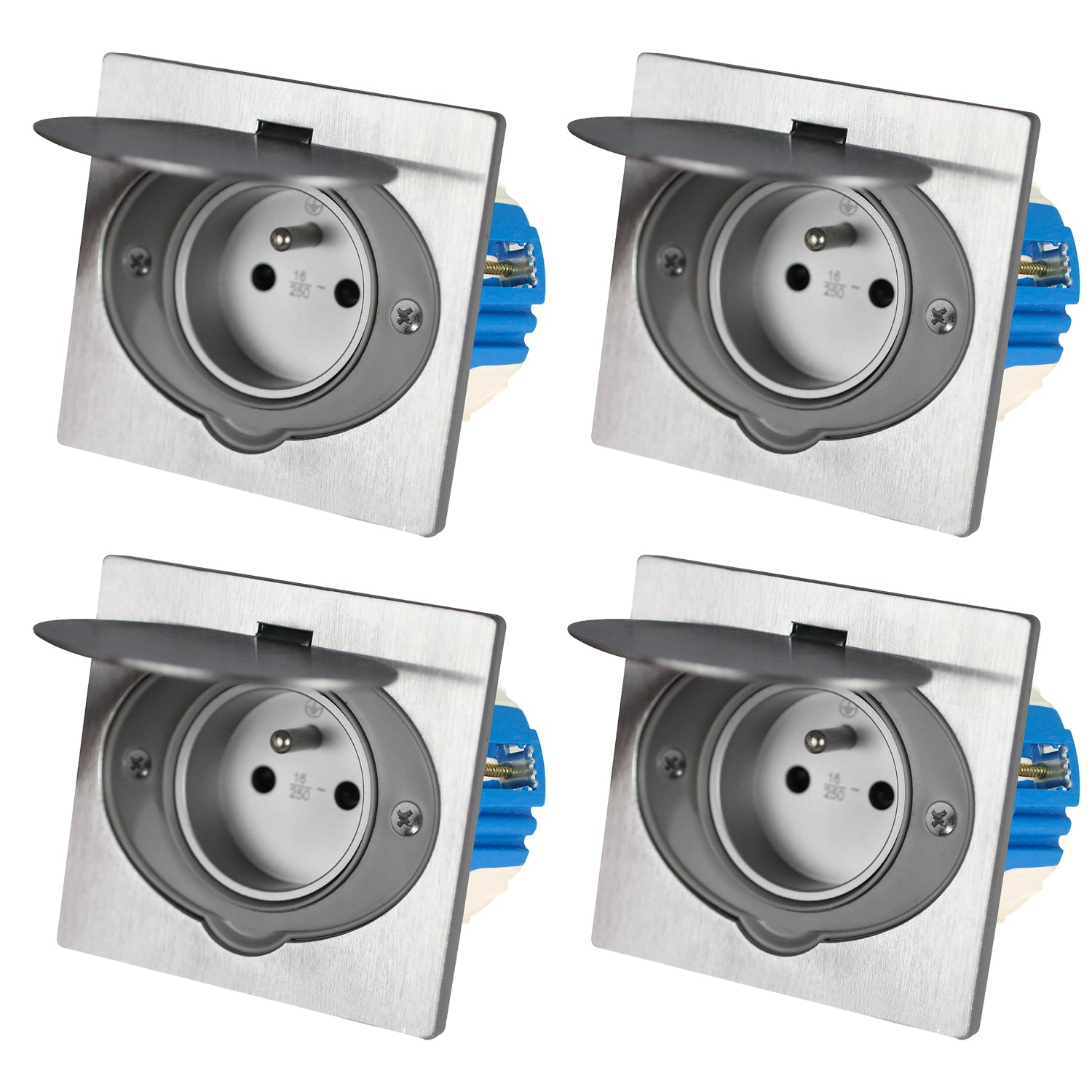 Sa puissance maximale de 3680W permet de brancher divers appareils domestiques ou professionnels en toute confiance. La finition aluminium brossé offre un rendu moderne et élégant, tandis que le clapet de protection à ouverture 90° garantit une protection contre la poussière et les éclaboussures.