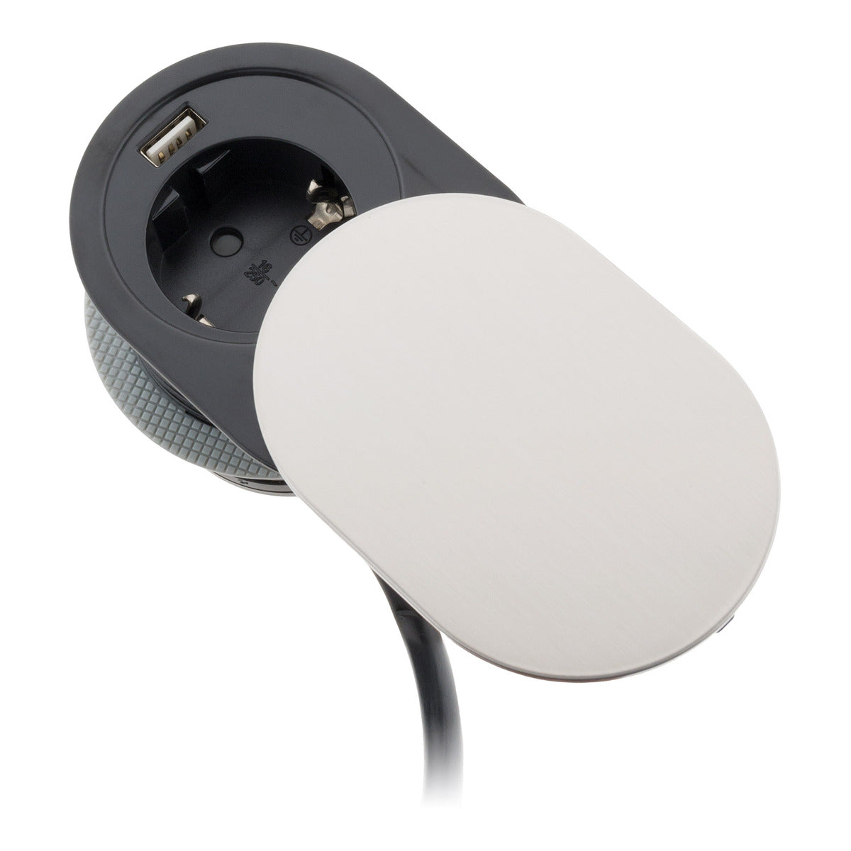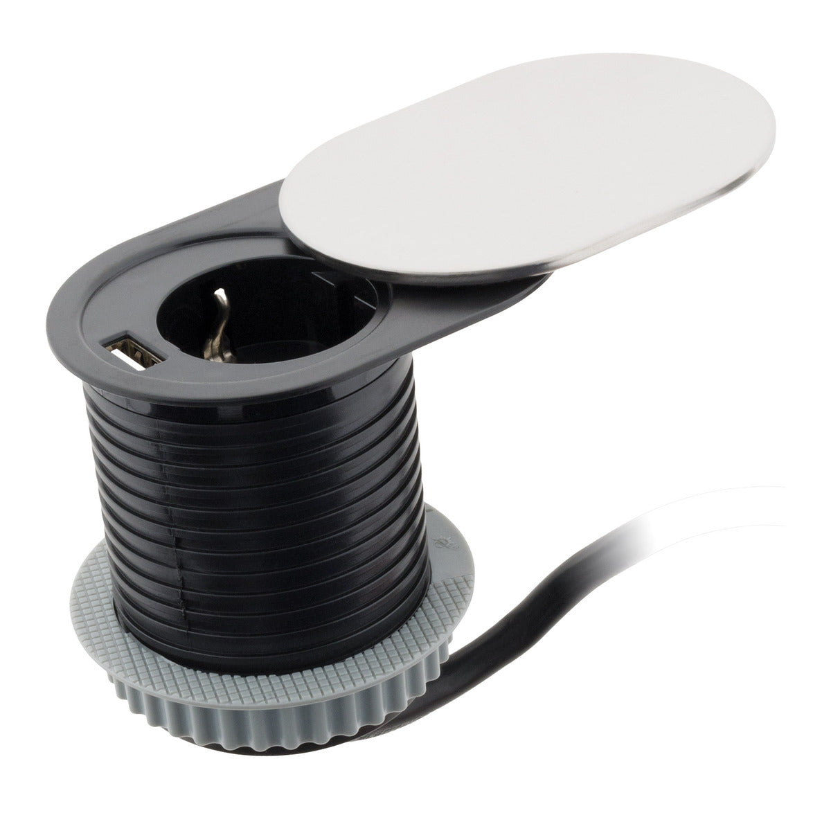 Prise encastrable Schuko + USB A avec couvercle à glissière - Noir - Otio