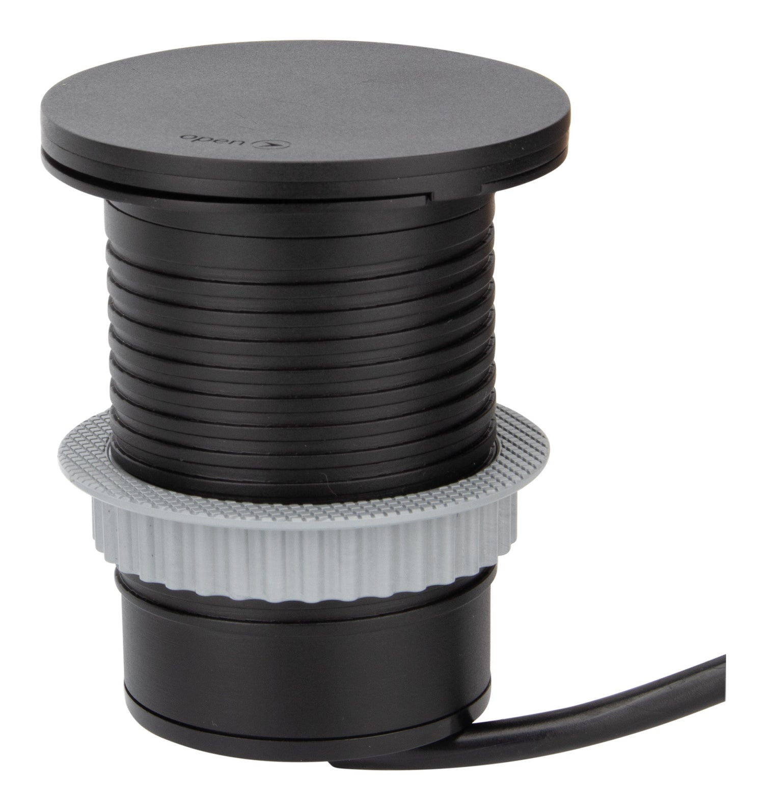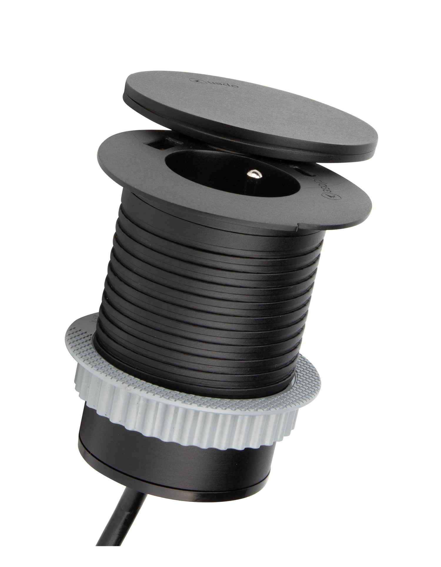 Son diamètre de 60 mm permet une installation simple, sans outil, directement dans le passage des câbles de bureau. Le couvercle pivotant cache élégamment les prises et ports USB lorsqu'il est fermé, pour un espace de travail organisé et moderne.