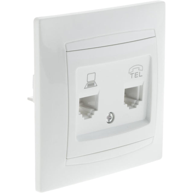 Conçue pour une installation à encastrer, elle s'adapte parfaitement à une boîte standard, facilitant son montage. La prise RJ45 Cat.5 assure une connexion réseau fiable, compatible avec les grades 1 et 2, idéale pour les applications informatiques, tandis que la prise RJ11 Cat.3 offre une connectivité téléphonique avec ses 3 à 4 broches.