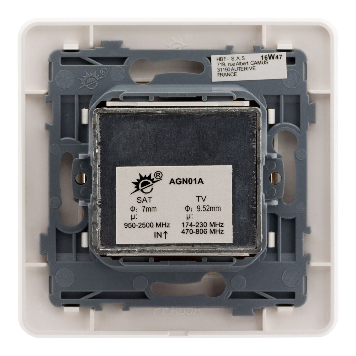 Son moteur compact avec support clipsable et réglage millimétrique facilite une installation encastrée précise sur tout type de boîte d'encastrement. Livrée avec vis et griffes, elle est prête à poser et s'intègre parfaitement dans des intérieurs modernes. Compatible avec les standards TV 9,52 mm et satellite 7 mm, cette prise assure confort, praticité et performance pour vos installations multimédia domestiques.