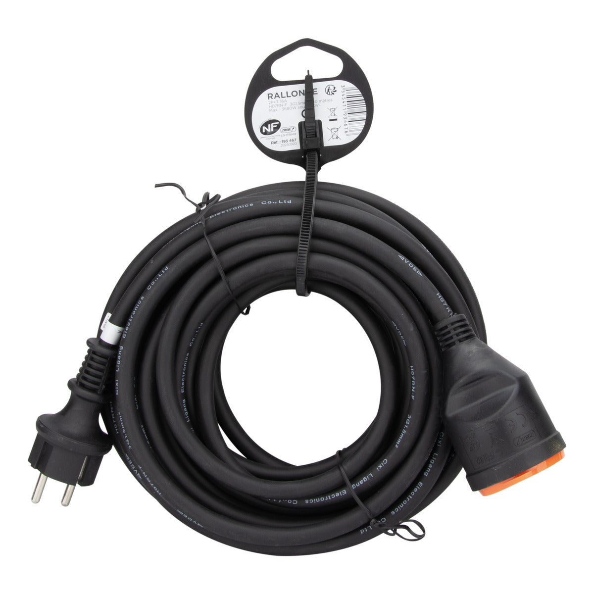 Le clip de fixation orange permet un rangement simple, tandis que la prise 2P+T assure la compatibilité avec les appareils électriques reliés à la terre. Idéale pour pompes, nettoyeurs haute pression et éclairages extérieurs, cette rallonge combine sécurité, performance et facilité d'usage.