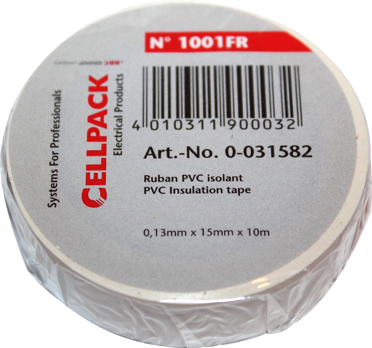 Caractéristiques du ruban adhésif isolation électrique 15mm x 10m - Cellpack :