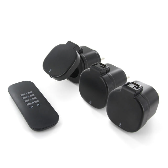 Set de 3 mini prises étanches IP44 + télécommande - 2300W - Noir - Chacon est en rupture de stock et sera expédié dès qu’il sera de retour en stock.